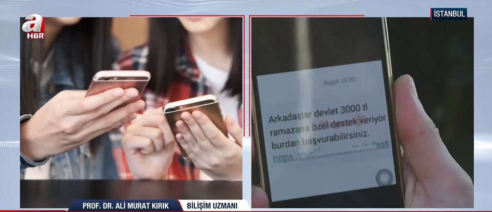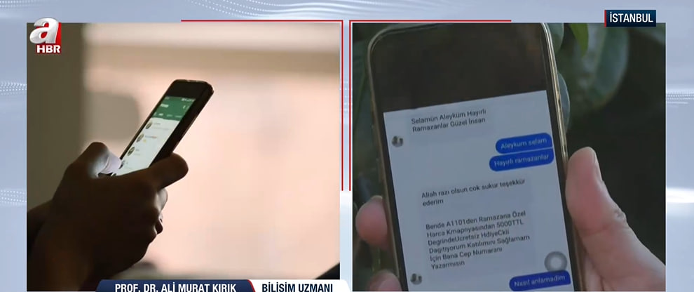 Ramazan'ın başlamasıyla sahte "yardım", "iftar daveti" ve "devlet desteği" mesajlarıyla dolandırıcılık artıyor. Bilişim Uzmanı Prof. Dr. Ali Murat Kırık, oltalama tuzaklarına karşı vatandaşları A Haber ekranlarında uyardı.