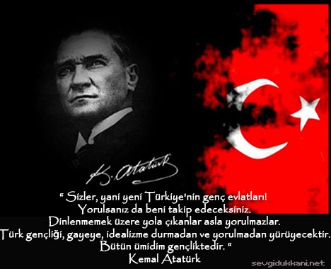 Tüm olumsuzluklara rağmen Atatürk ve Arkadaşları önderliğinde tüm halkımızca verilen büyük mücadele sonucunda kurulan Türkiye Cumhuriyeti Gençlerimize emanettir. Bu emaneti sonsuza kadar korumak ve yaşatmak, gelecek nesillere en iyi şekilde aktarmak Gençlerimizin en başta gelen görevidir.