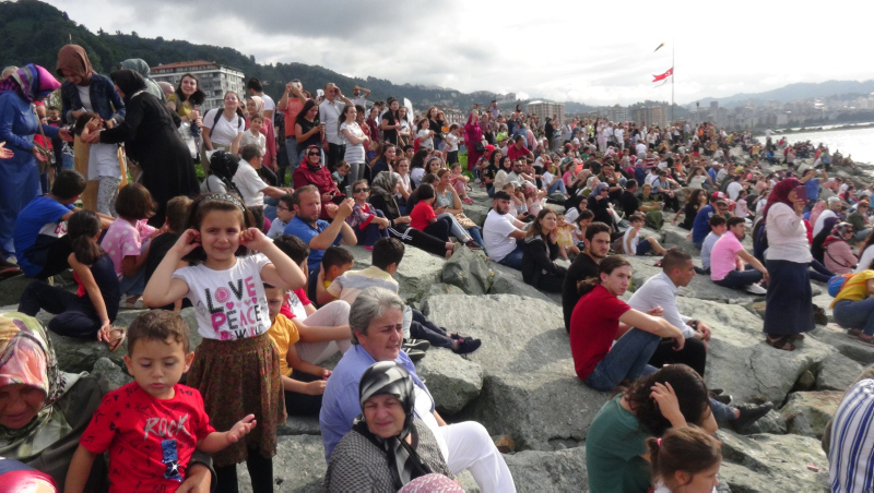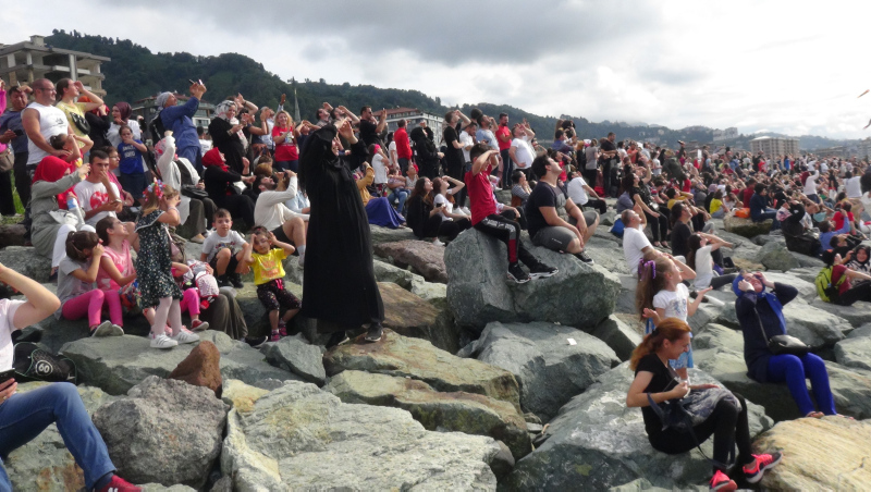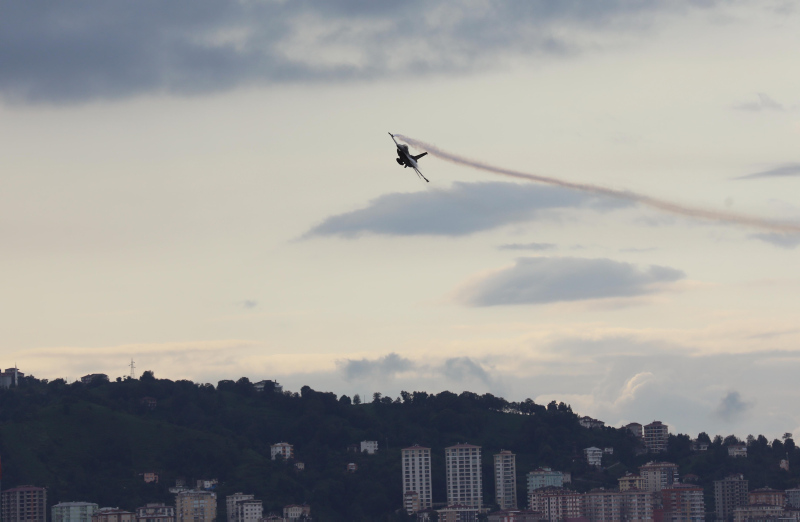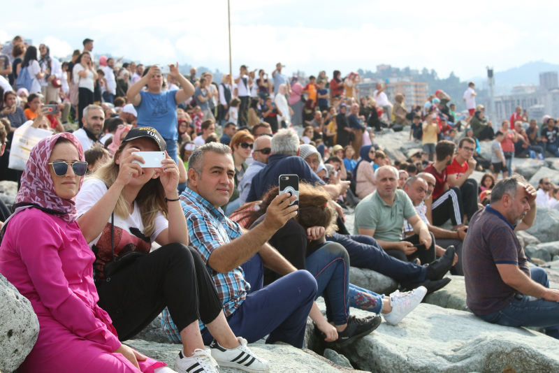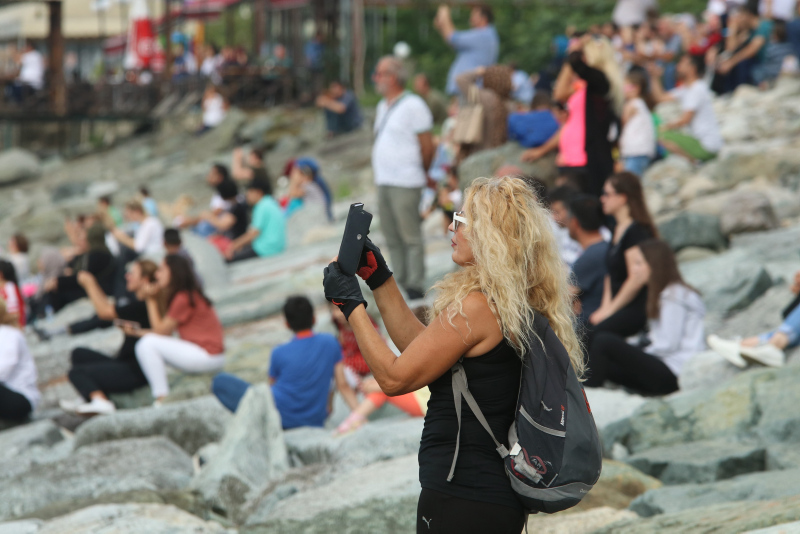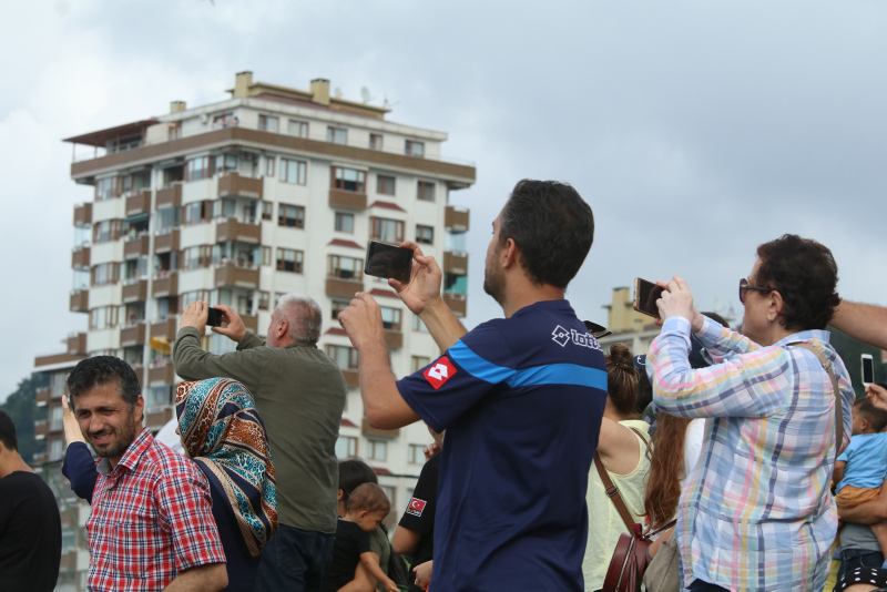 Türk Silahlı Kuvvetlerinin gösteri ekibi Solo Türk, Rize'de gösteri uçuşu düzenledi. Solo Türk'ü izlemeye gelen vatandaşlar nefes kesen gösteriyi cep telefonlarına kaydetti.