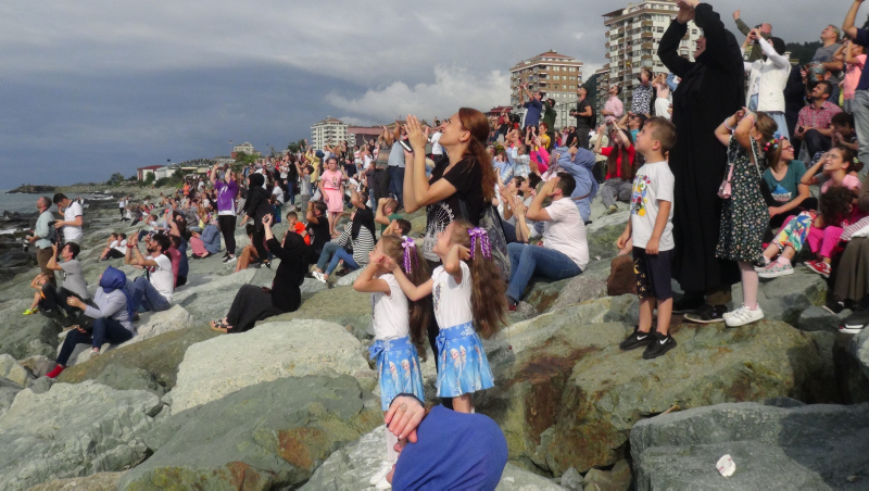 Muhteşem gösteriyi izleyen vatandaşlar bir yandan da telefon kameralarıyla gösterileri kaydetmeye çalıştı.