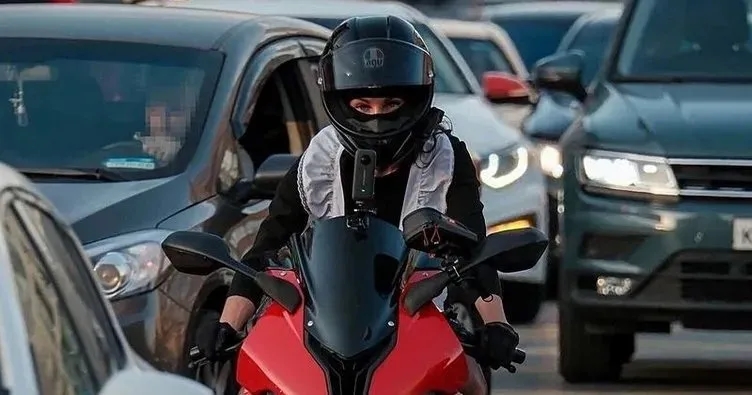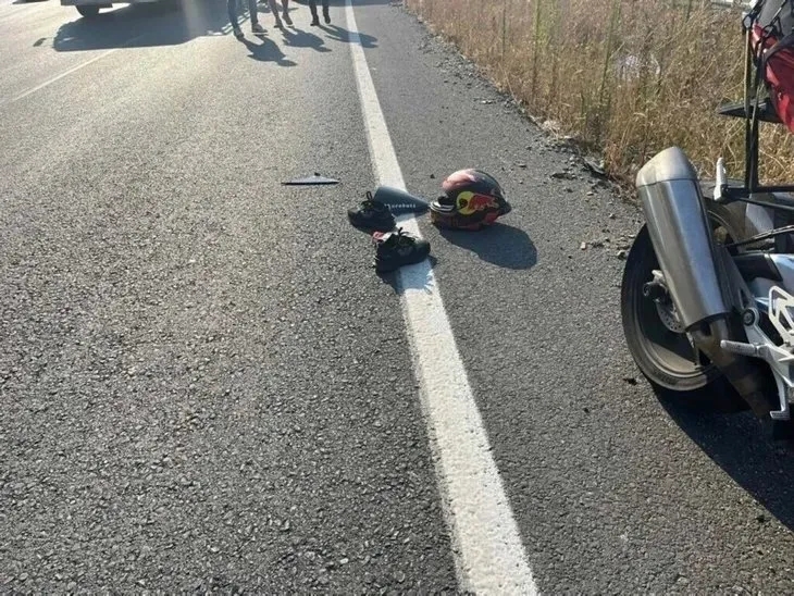 Çarpmanın etkisiyle devrilen motosiklette 26 metre sürüklenen ve orta refüje düşen Ozolina'nın bu sırada kaskı da çıktı.