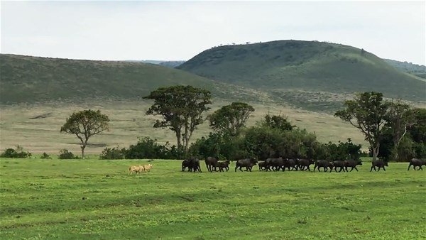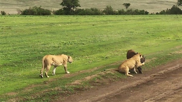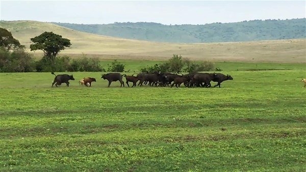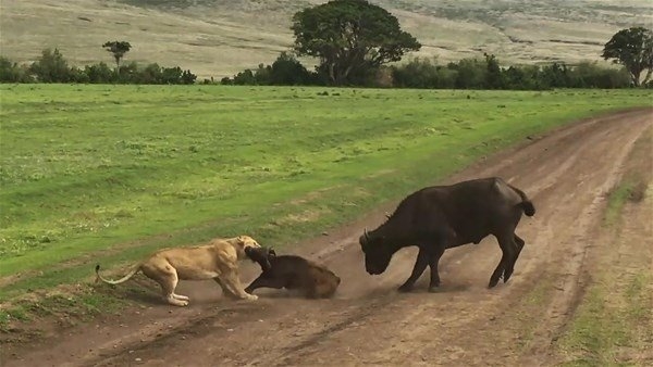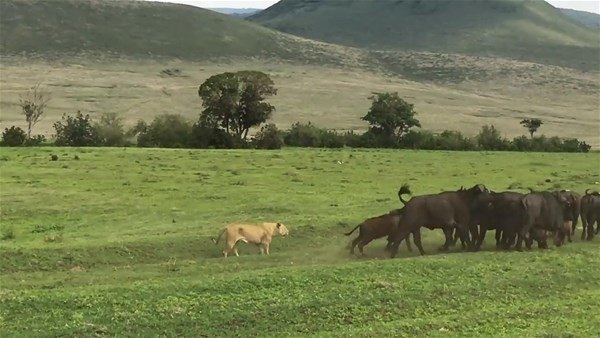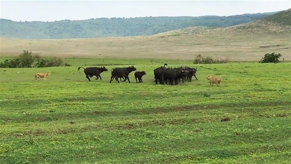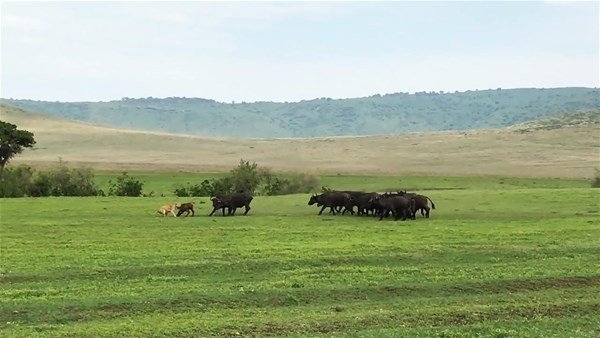 Serengeti, 30 bin kilometrekarelik alanıyla dünyanın en büyük safari alanı. İşte bu ünlü yerde safari yapanlar çok ilginç anlara canlı canlı tanıklık etti. Dişi aslanlar tarafından kovalanan bufalo grubu tam da önlerinde bir savaşa girişti. O anlar ise anbean görüntülendi.