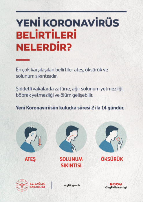 Bakanlığın Twitter'dan yaptığı bilgilendirmeye göre, koronavirüsler bazen solunum sistemi, bazen de sindirim sistemi hastalıkları yapıyor, solunum sisteminde soğuk algınlığı belirtileri gösteren enfeksiyonlara ve zatürreye neden oluyor.