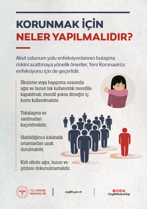 Sağlık Bakanlığından yeni tip koronavirüsün (Kovid-19) ne olduğu, nasıl bulaştığı, belirtileri, teşhis ve tedavisine ilişkin bilgilendirme yapıldı.