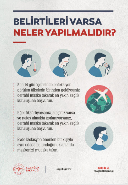Sağlık Bakanlığınca hazırlanan "2019-nCoV Rehberi"nde, sağlık çalışanlarına hastalığın belirtileri, bulaşma yolları ve olası vaka durumlarında neler yapabilecekleri hakkında ayrıntılı bilgi verildi.