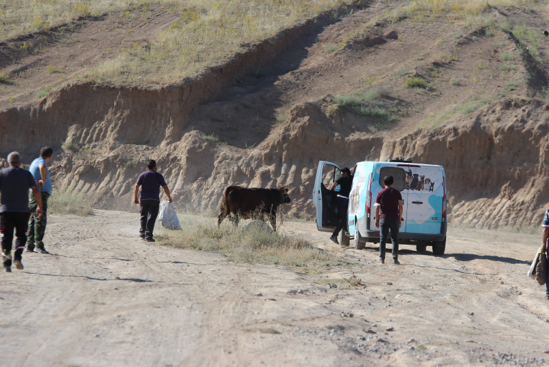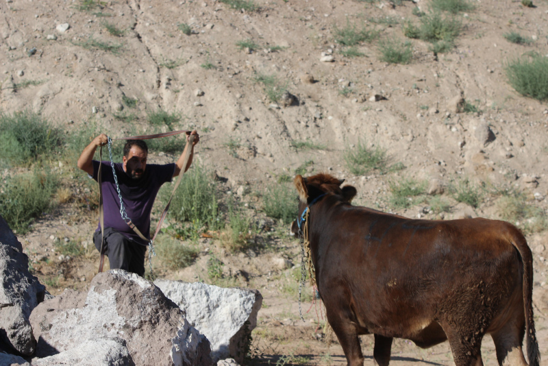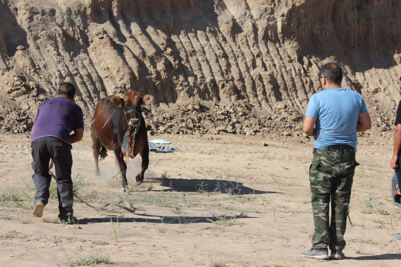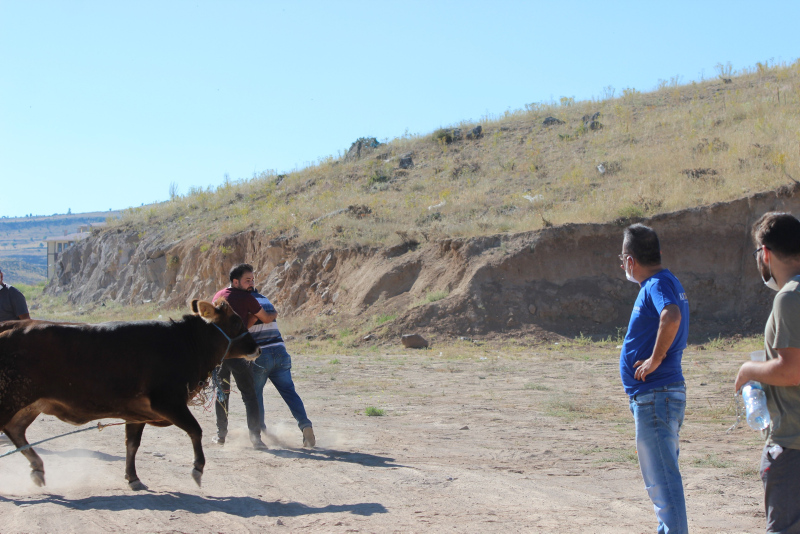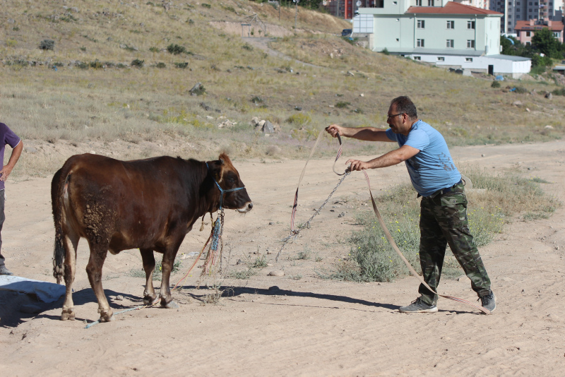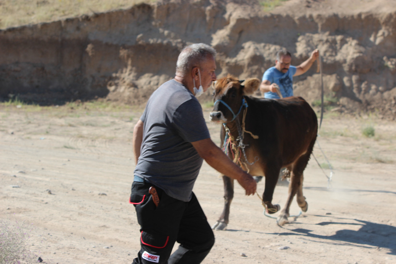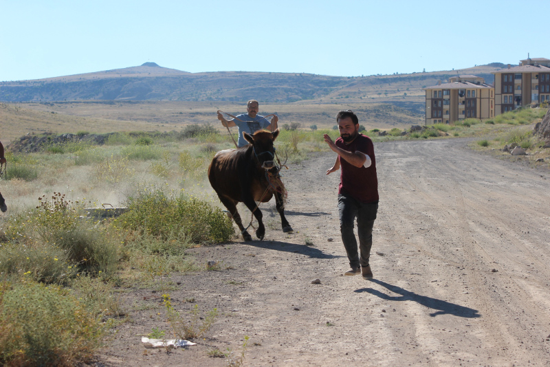 Bahçelievler Mahallesi'ne kadar kaçan ve burada boş araziye giren dana, zaman zaman tehlikeli anlar yaşattı. Vatandaşlar, yakalamaya çalıştıkları danaya "Gel güzel kızım, gel kurban olduğum" diye seslendi.