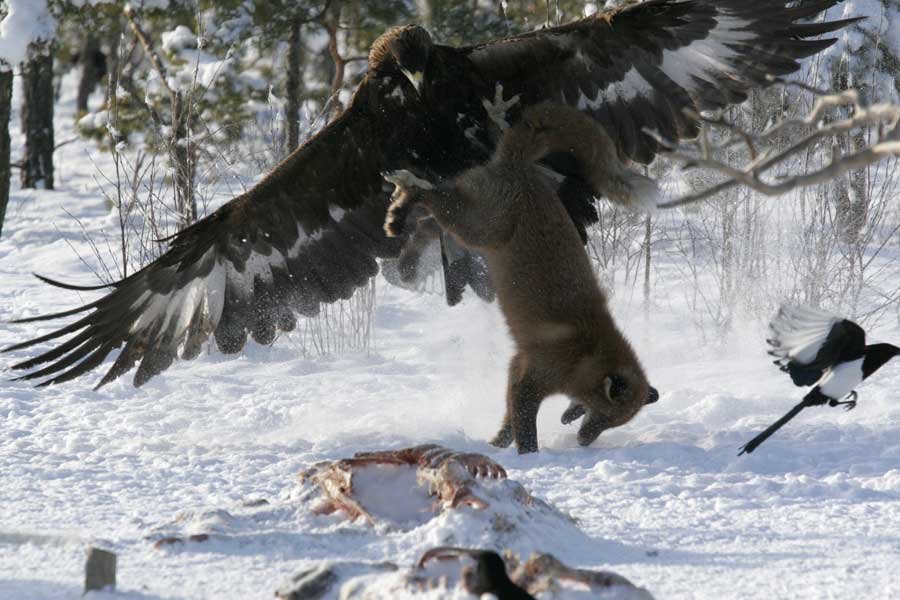 Aldığı darbelerle neye uğradığını şaşıran şahin uçarak oradan uzaklaştı.