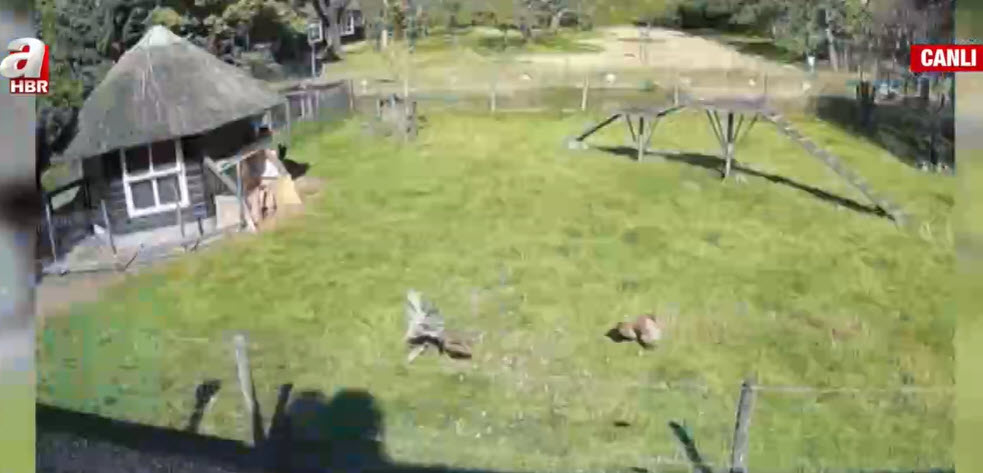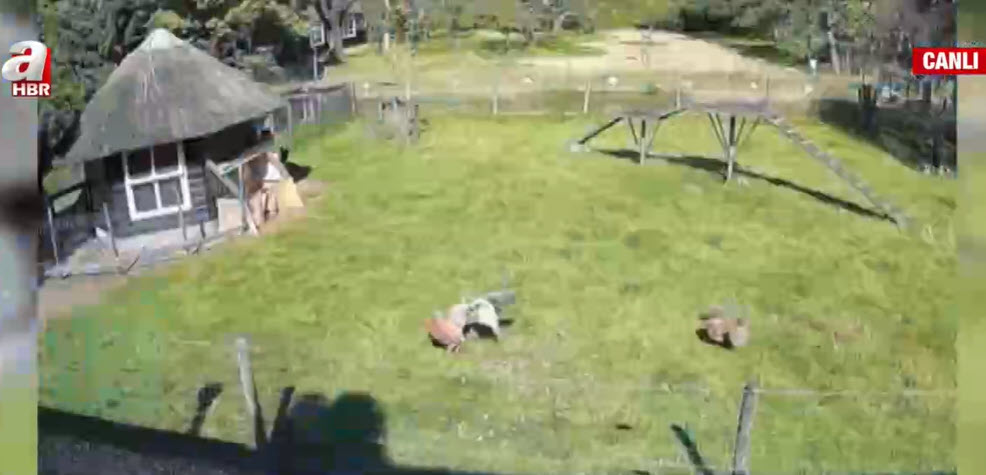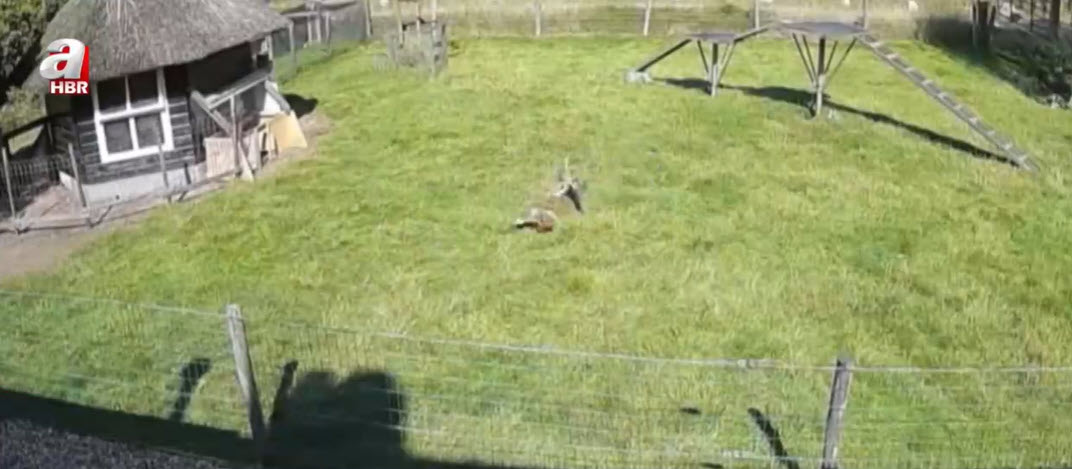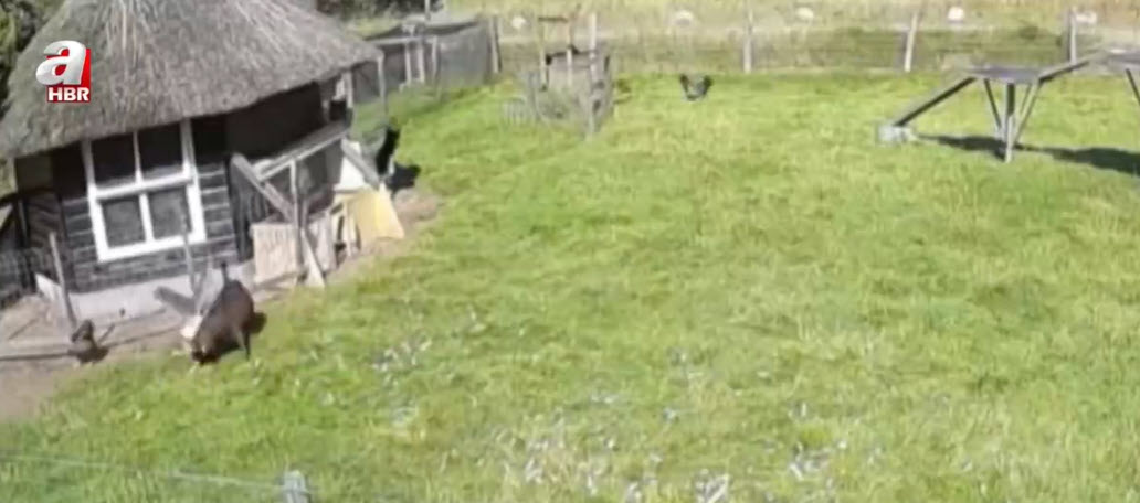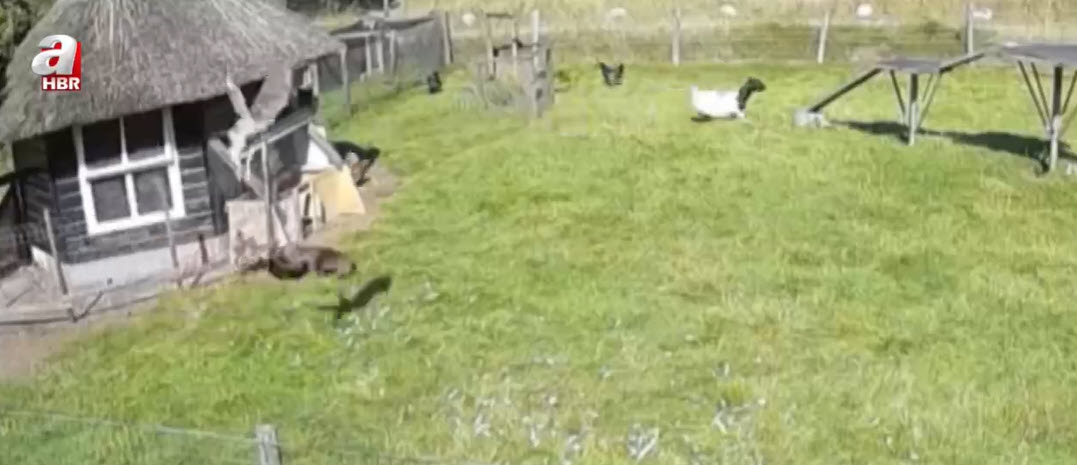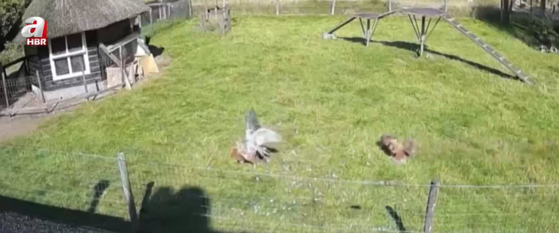 Görüntü Hollanda'da bir çiftlikte kaydedildi. Bir tavuğu gözüne kestiren şahin saldırıya geçti.