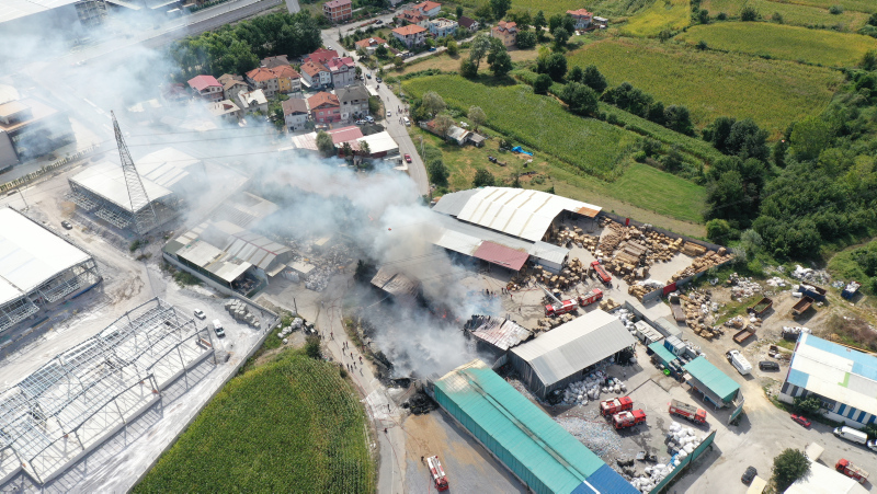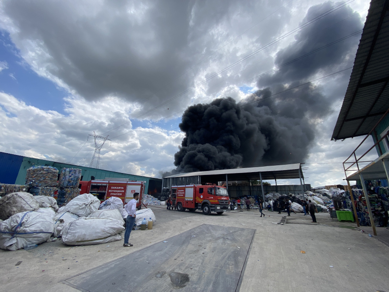 Sakarya'da geri dönüşüm tesisinde yangın! Dumanlar gökyüzünü kapladı