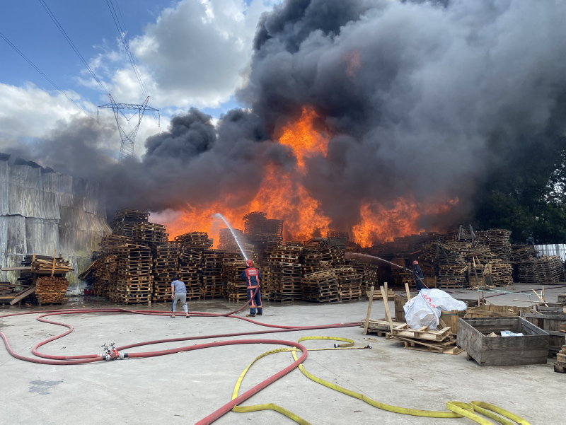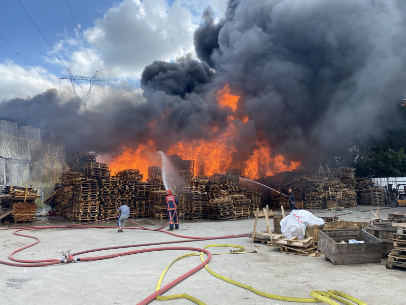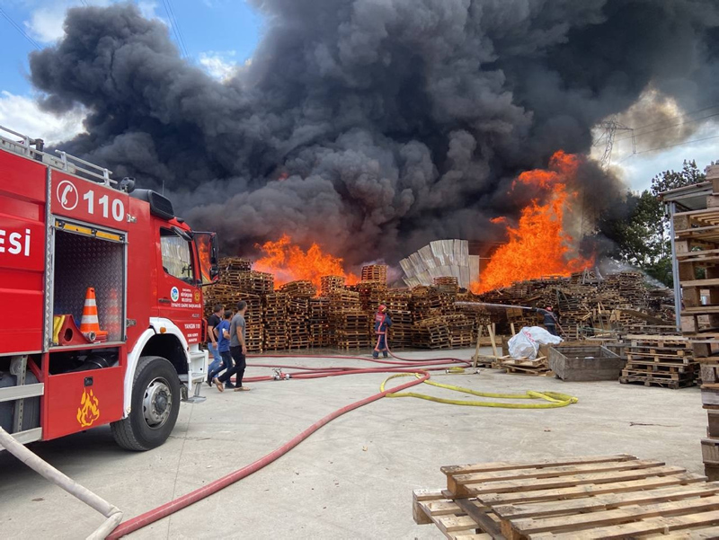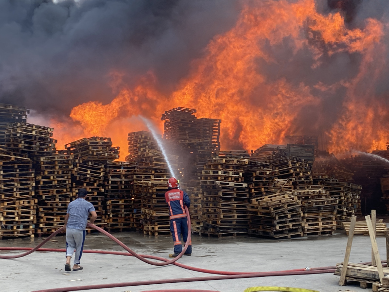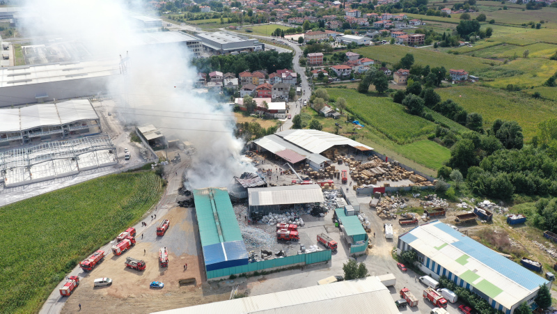 Son dakika haberine göre: Sakarya'nın Arifiye ilçesinde plastik geri dönüşüm fabrikasında çıkan ve palet üretim tesisine sıçrayan yangın, itfaiyenin müdahalesiyle söndürülmeye çalışılıyor.