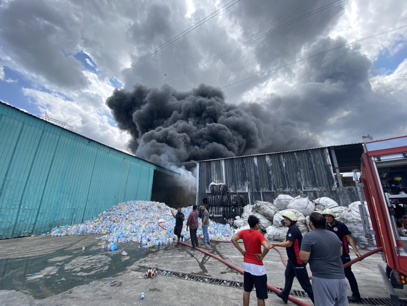 Hanlıköy Mahallesi Lale Sokak'ta faaliyet gösteren plastik geri dönüşüm fabrikasında henüz belirlenemeyen nedenle yangın çıktı.