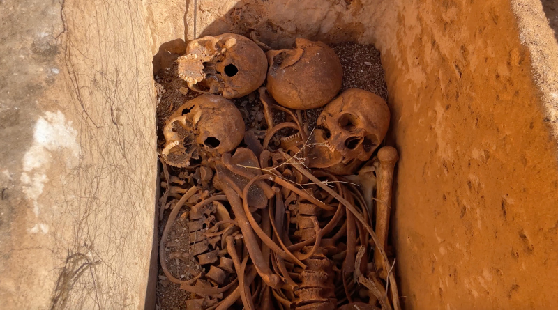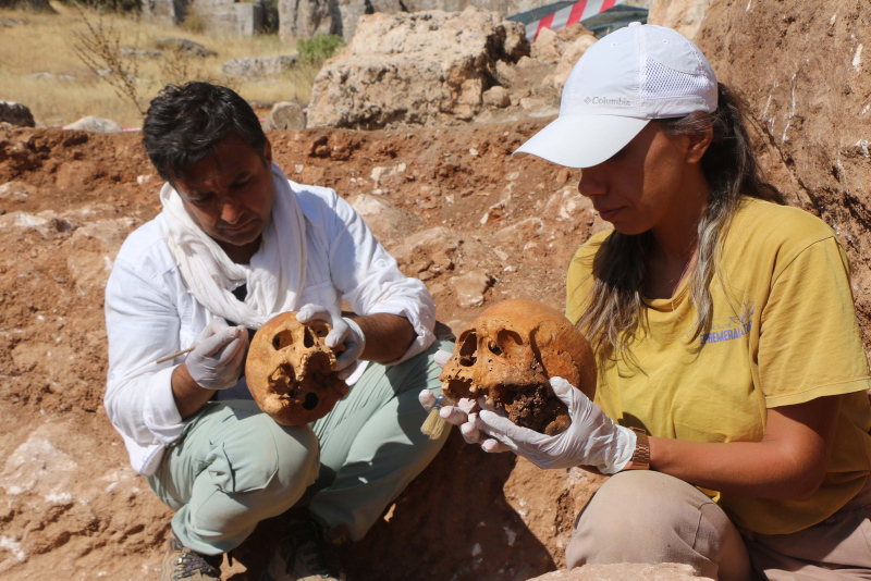 Adıyaman'daki Perre Antik Kenti'nde yürütülen kazı çalışmalarında, sanduka mezar içerisinde 1800 yıllık olduğu değerlendirilen 4 insan iskeleti bulundu.