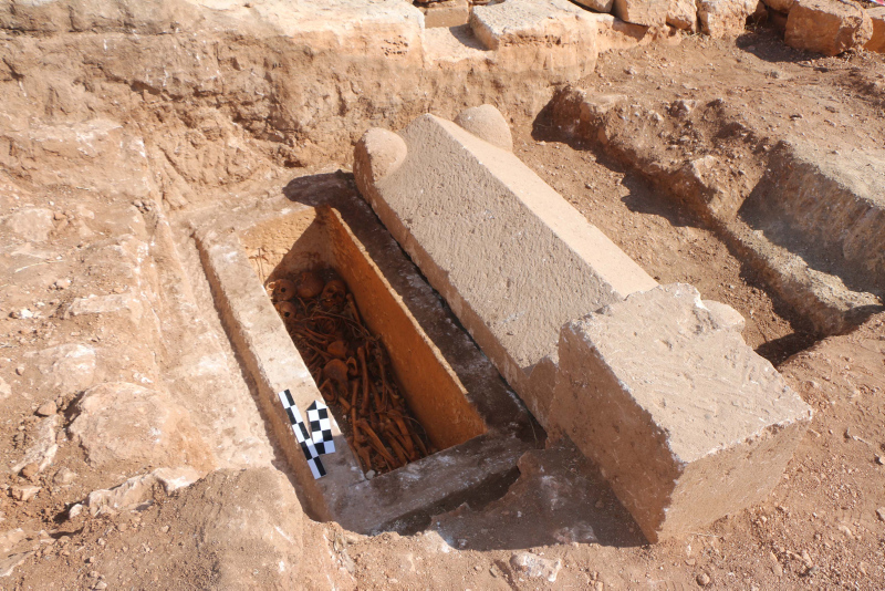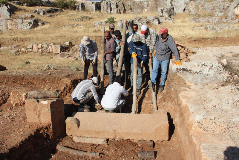 Kommagene Krallığı'nın 5 büyük kentinden biri olan Perre Antik Kenti'nde 2022'de başlayan, Örenli Mahallesi'nde mozaiklerin bulunduğu alanda devam eden kazı çalışmaları sırasında sanduka mezar bulundu.