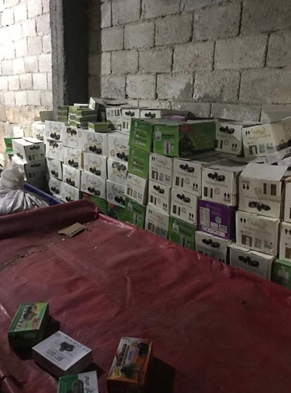 Sağlıksız ve hijyen kurallarına uygun olmayan şartlarda depoda istiflenen hurma kutularını kontrol eden zabıta ekipleri ürünlerin son kullanma tarihlerinin geçtiğini belirledi.