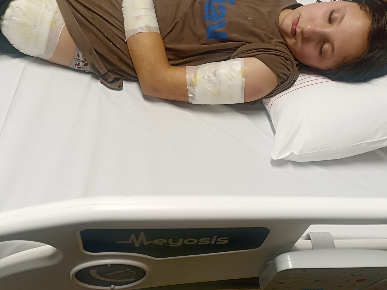 Yaşanan köpek saldırısı sonucu kızının vücudunda derin yaralar ve doku kayıpları oluştuğunu ifade eden baba Koçyiğit, "Kolundan, baldırından, sırtından ve bileğinden olmak üzere toplam 4 yerinden ısırma var. Tabi derin ısırık oluşmuş durumda, kolu bitkin ve parçalamış vaziyette" dedi.