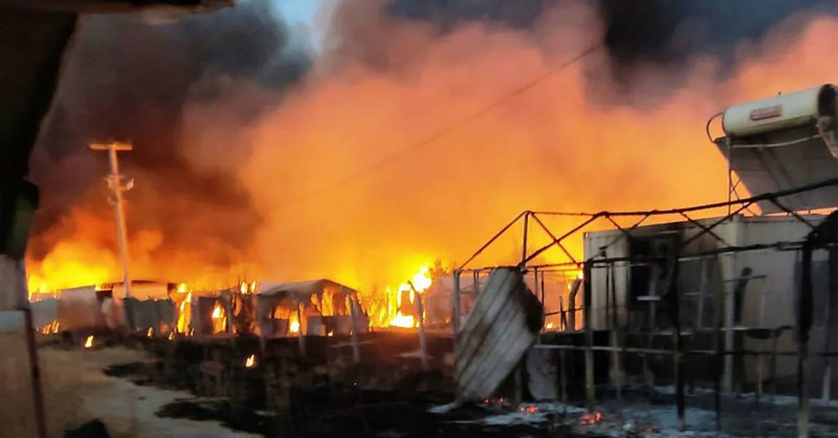 İddiaya göre, elektrik trafosundan çıkan kıvılcımların çadırlara sıçramasıyla bir anda alev aldı. Çıkan yangında can kaybı yaşanmazken, bir mahalle tamamen yandı.