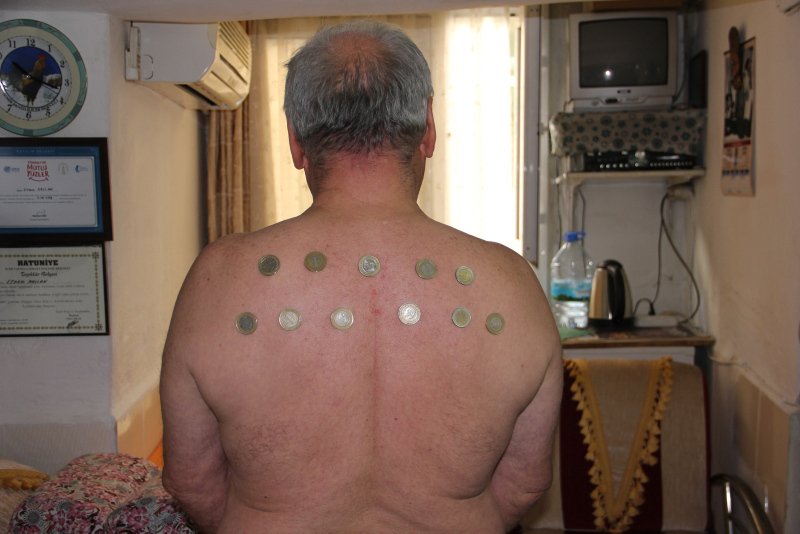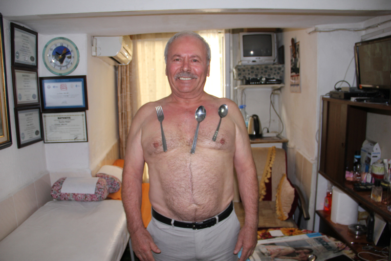 Şanlıurfa'da yaşayan ve 'mıknatıs adam' lakabı ile anılan Vahit Balan (68), bio enerji ile migren, romatizma ve sırt ağrıları gibi hastalıkları tedavi ettiğini iddia ediyor. Vücuduna bıçak, kaşık ve çekiç gibi metalleri yapıştıran Balan, doktorların bu durumun bio enerjiden kaynaklandığını söylediğini ifade etti.