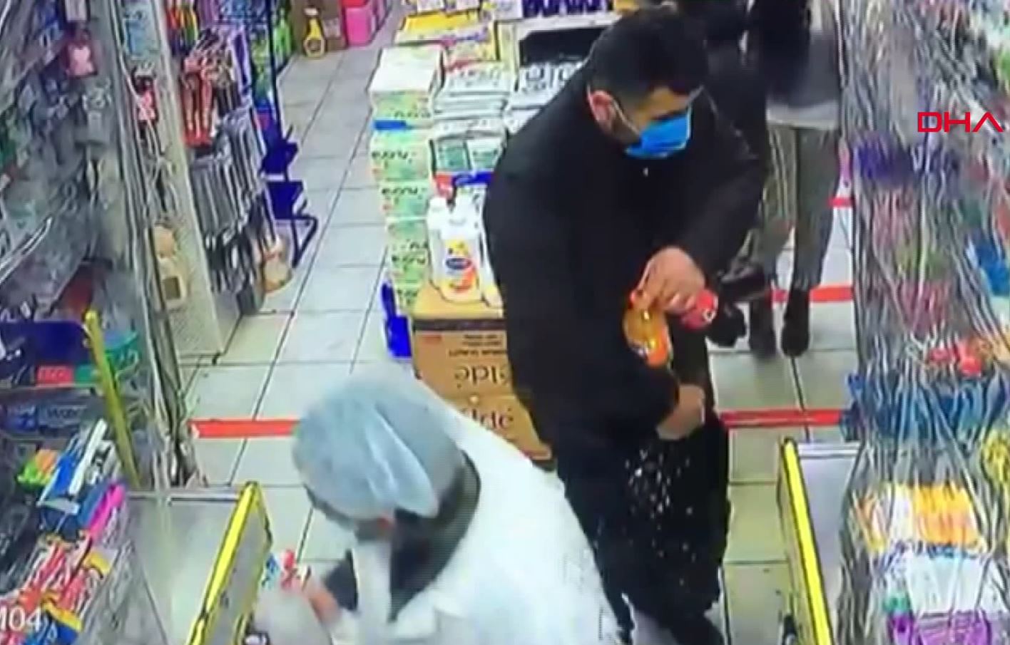 Durumu fark eden market kasiyeri kadın ise adamı uyardı. Kendisini uyaran kasiyere, "Tanıdığım. Bir şey yok" diyerek cevap veren adam, daha sonra marketten ayrıldı.