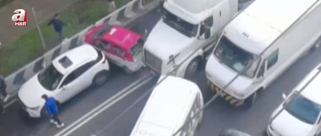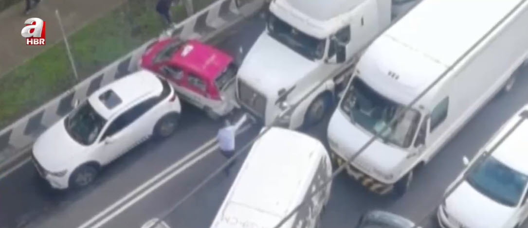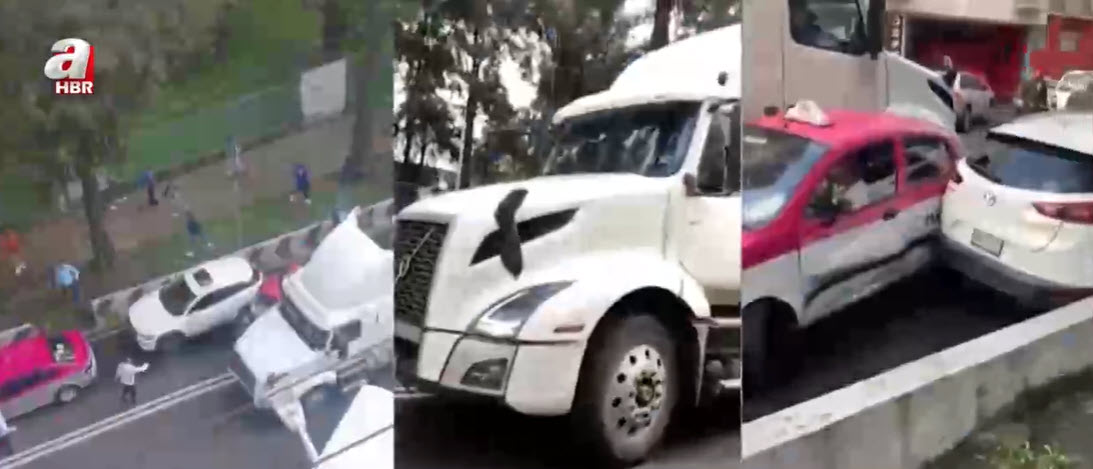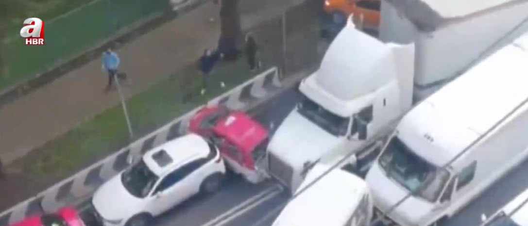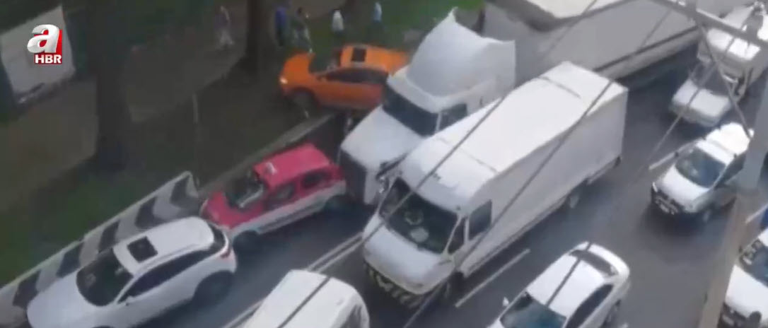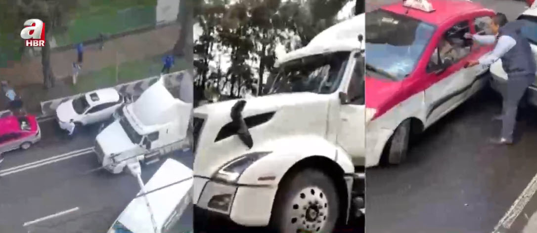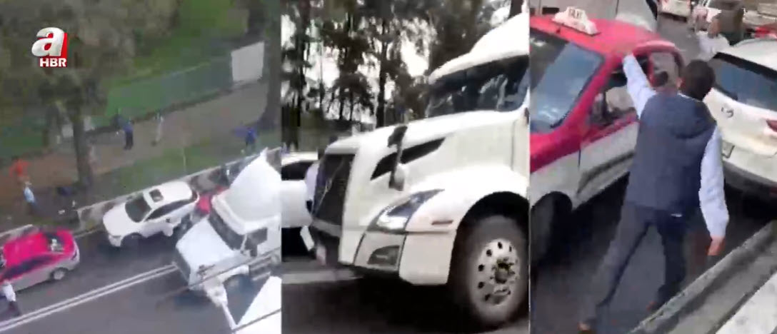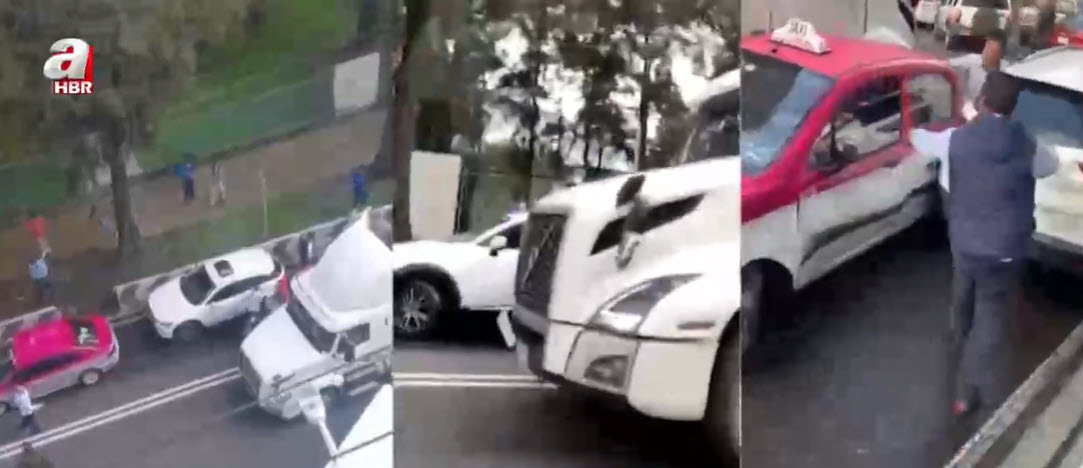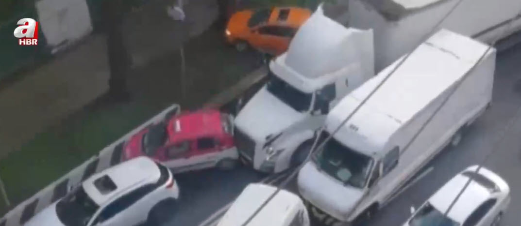 TIR diğer arabalara çarparak ilerlemeye başladı.