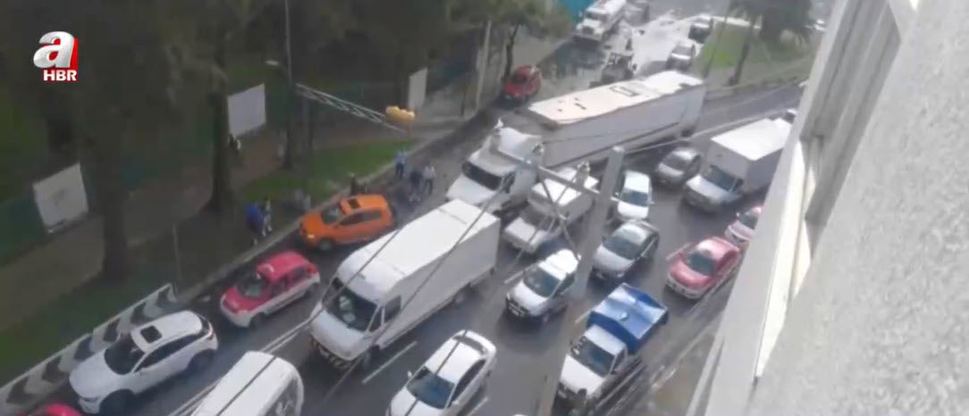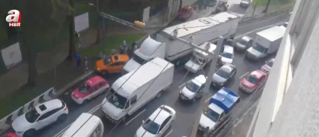 Trafik sıkışıktı. Bir TIR şoförü duran araçlara aldırmadan gaza yüklendi.