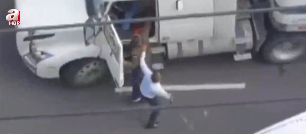 Öfkelenen diğer sürücüler sopa ve yangın tüpüyle TIR şoförüne saldırdı.