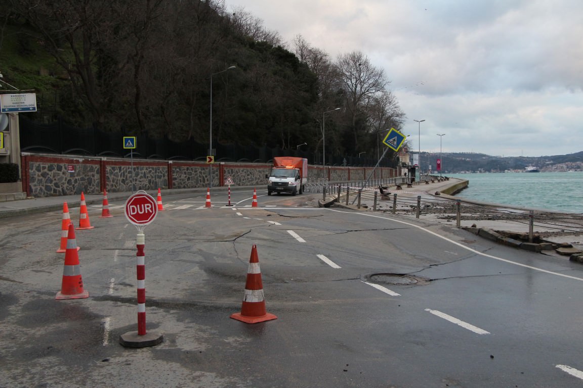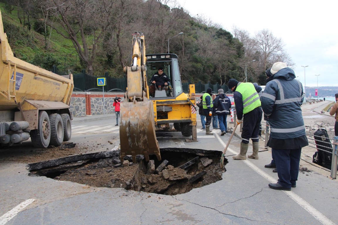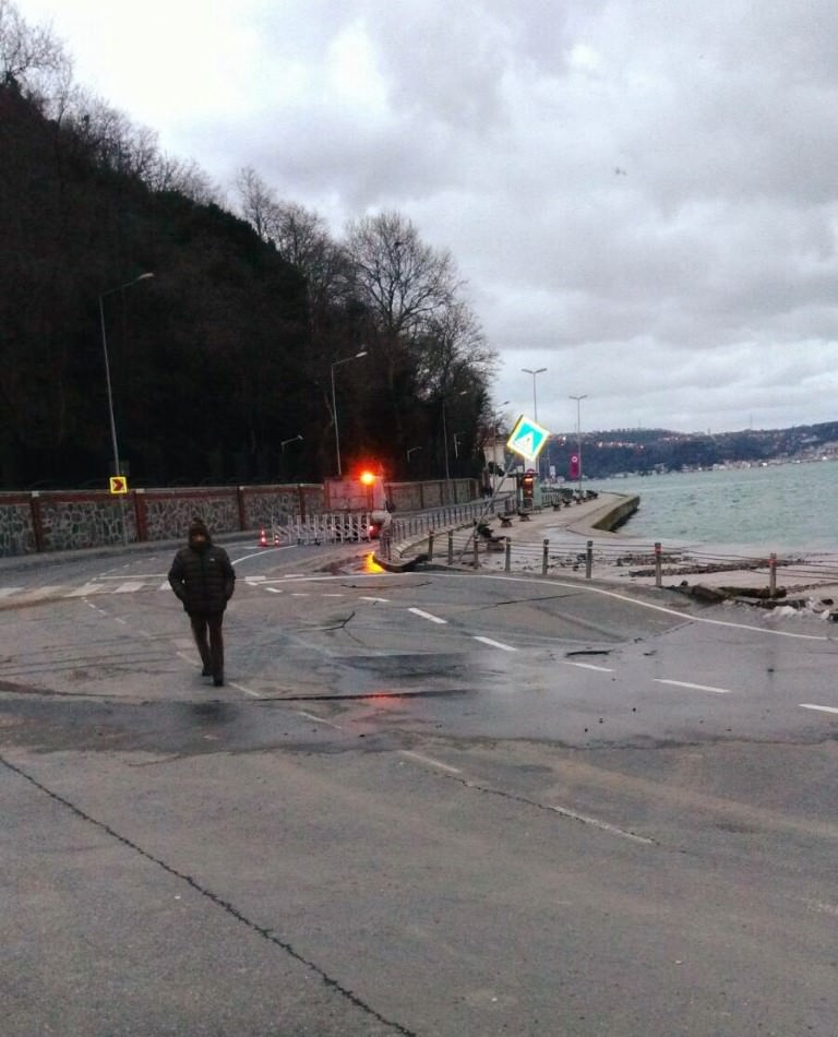 Sabah saatlerinde meydana gelen çökme nedeniyle Tarabya- Yeniköy arası çift yönlü trafiğe kapatıldı.
