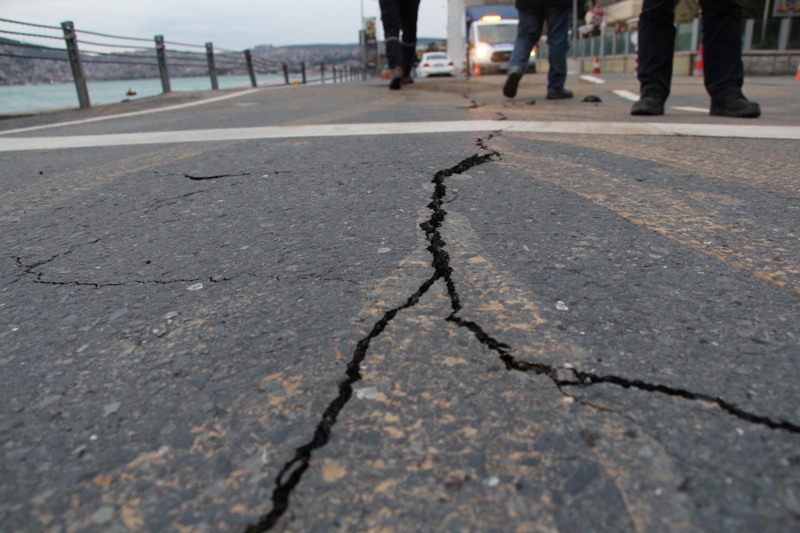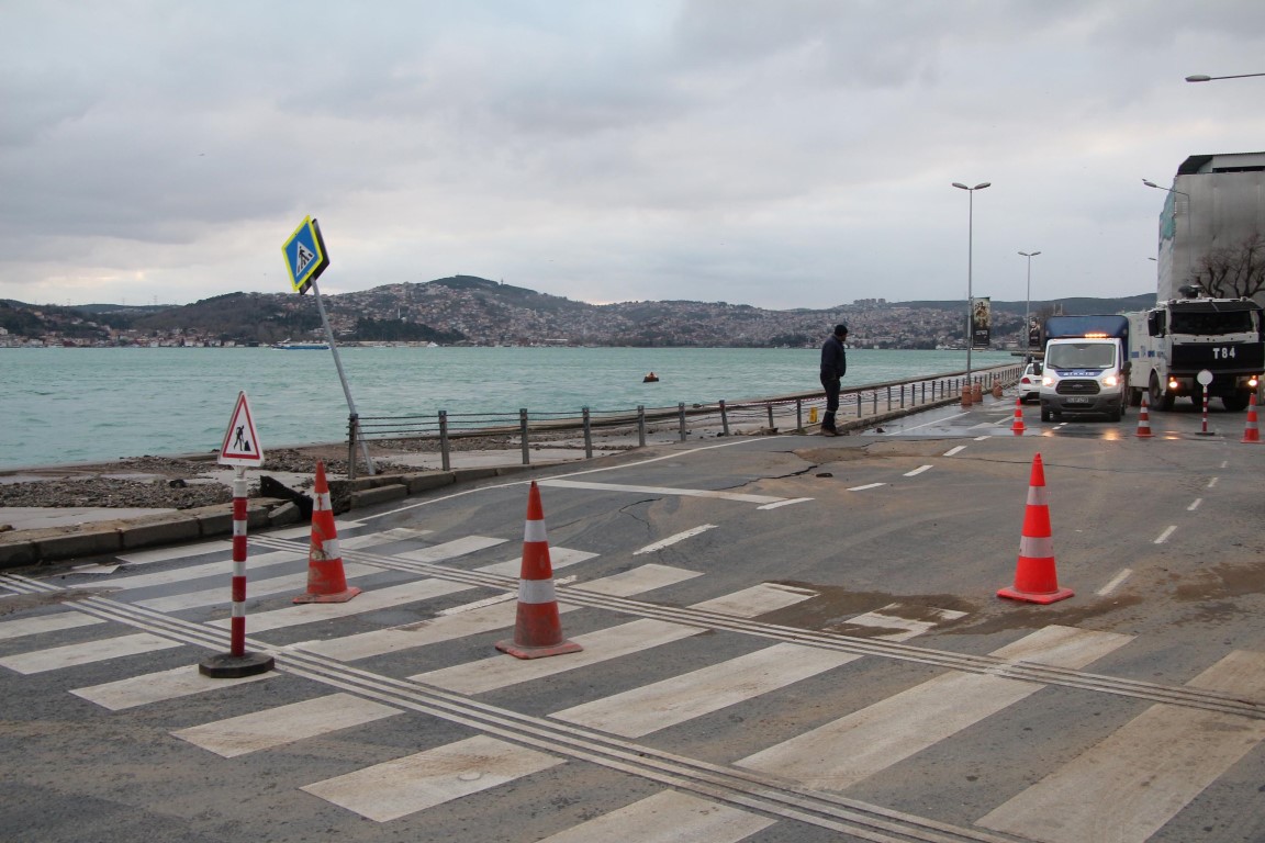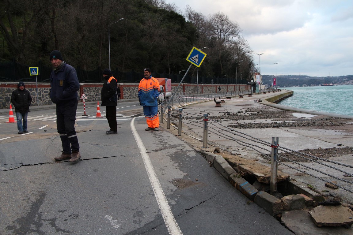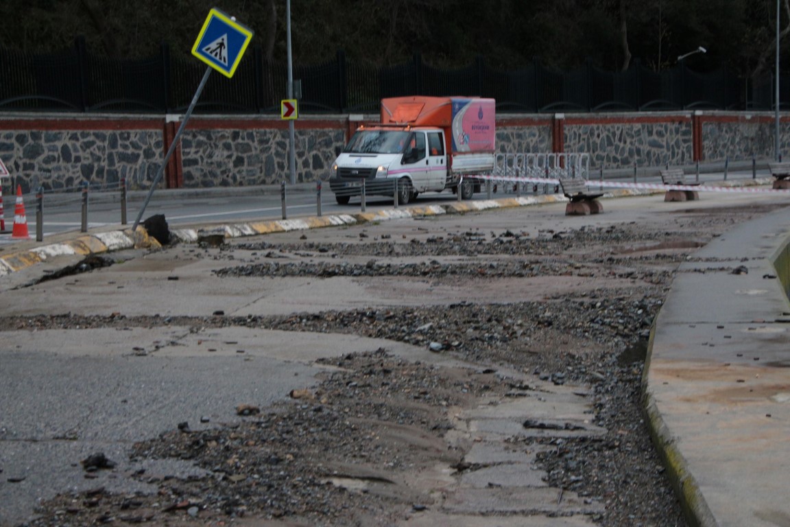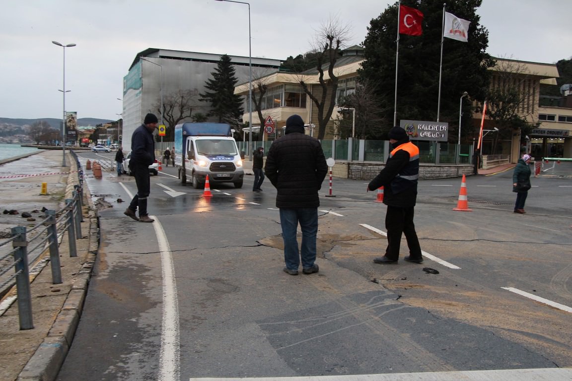 Sarıyer Tarabya sahilinde yolda çökme ve kabarmalar meydana geldi.