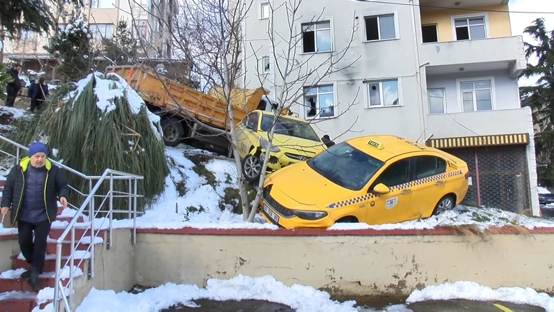 İstanbul Sarıyer'de buzlanan yolda kayan taksi bahçe duvarına çarptı. Arkadan gelen başka bir taksi ve tuz kamyonu da önlerindeki araçlara çarpınca zincirleme kaza meydana geldi. Taksi şoförü Umut Gökçek, "Yukarıdan aşağı kaydık, ikinci arabanın durduğu yerde benim araba asılı kaldı. Oradan kurtarmaya çalıştım. Beş dakika sonra ikinci araba geldi. Koşa koşa aşağıdan yukarı kaçtım. 'Dur gelme abi' dedim. Abi sağ olsun dinlemedi. 'Ben bu yoldan inerim' dedi. Bindi arabaya, arabaya binmesiyle gelip kayması bir oldu" dedi.