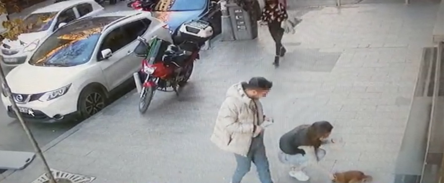 Ardından da genç kız çevresini kontrol ettikten sonra sevgilisi de köpeği severek götürerek geldikleri araca bindi.