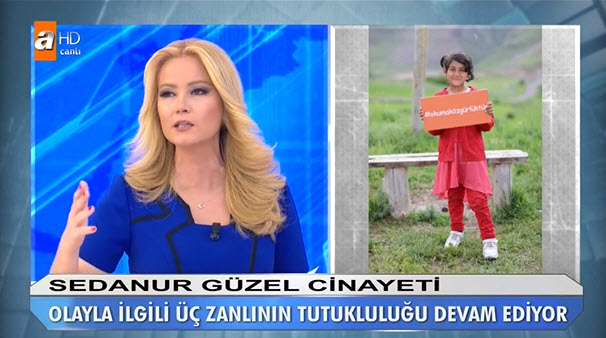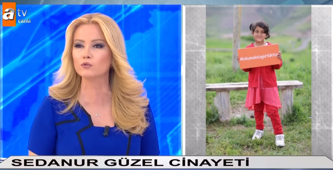 Sedanur'u kim öldürdü? Türkiye bu katliamı konuşuyor, Müge Anlı da ekibiyle aramaya devam ediyor. 9 yaşındaki Sedanur Güzel'i öldürenlerin tamamen netleşmesi için Adli Tıp Kurumundan gelecek rapor bekleniyor. Müge Anlı ile Tatlı Sert programında Sedanur Güzel'İn katili aranıyor.