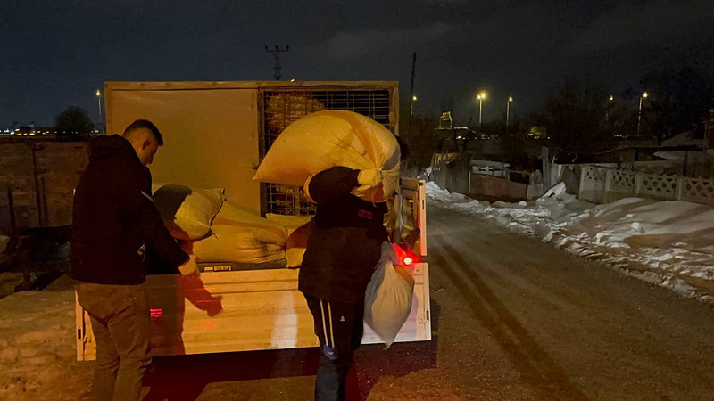 Olay yerine saman ve buğday çuvalları ile gelen ekipler aç kalan yılkı atlarını besledi.