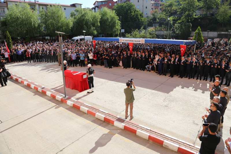 Kastamonu'da bir saldırganın ateş açarak şehit ettiği polis memuru Ahmet Şahan (38) için tören düzenlendi. Şehidin cenazesi, cenaze aracına konularak memleketi Nevşehir'e uğurlandı.
