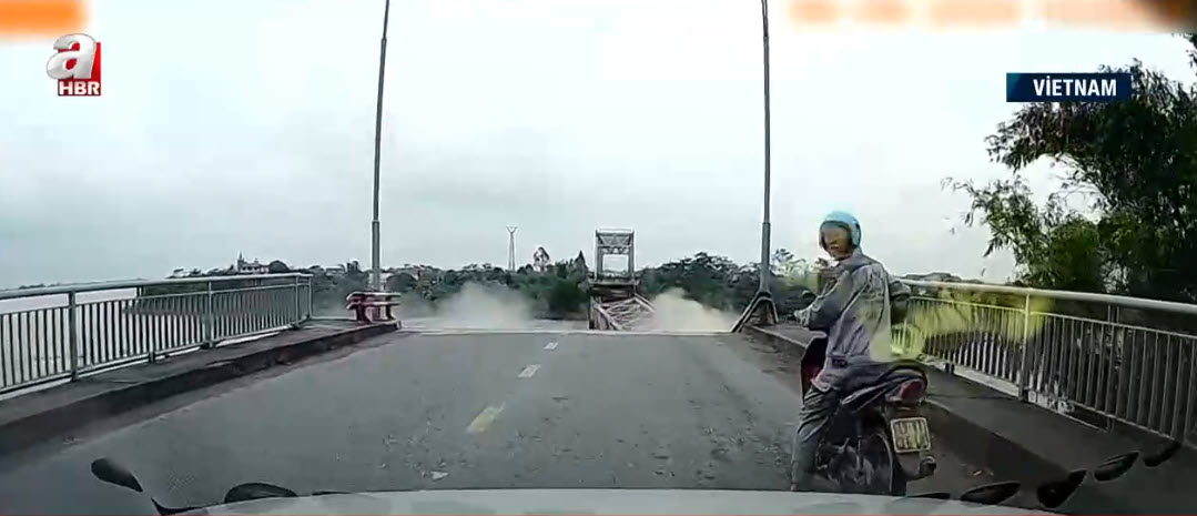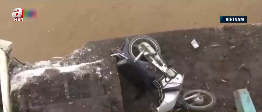 Vietnam günlerdir Yagi Tayfunu ile mücadele ediyor. Şiddetli yağışların neden olduğu selde bir köprü çöktü. 10 aracın ve 2 motosikletin köprüyle birlikte düştüğü kaza anı kameraya yansıdı.