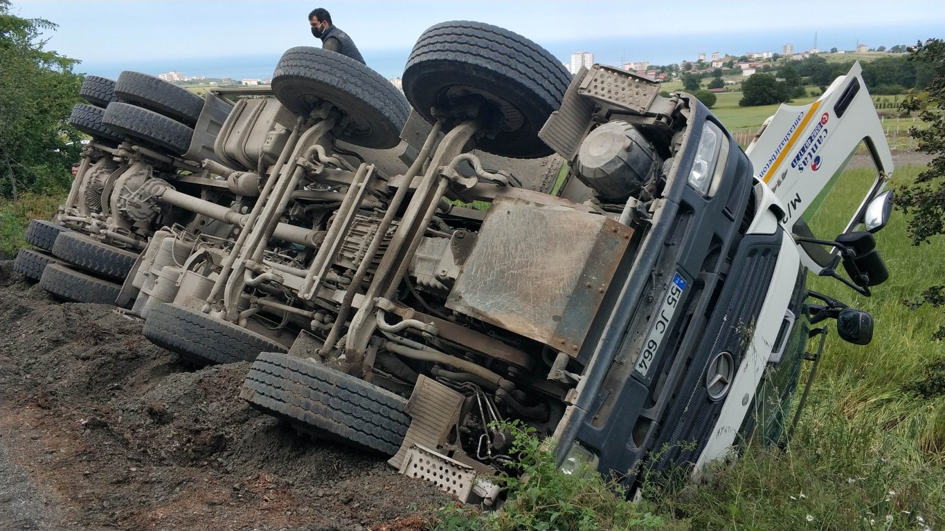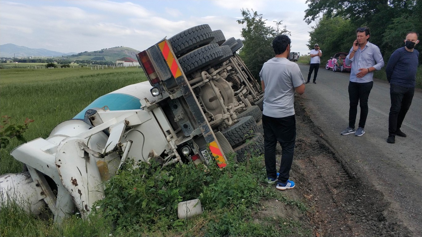 Edinilen bilgiye göre, bir beton firmasına ait inşaata beton dökmek için malzeme götüren Yaşar Erdem idaresindeki 55 JT 664 plakalı mikser üzerinden geçtiği yolun kenarındaki toprak zeminin çökmesi sonucu şarampole devrildi.