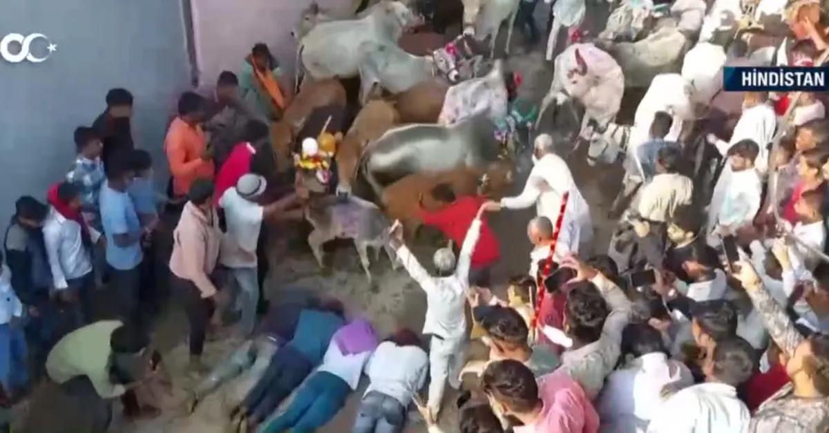 Hindistan'da her yıl düzenlenen sıra dışı gelenek görenleri hayrete düşürüyor. Hint vatandaşlar kendilerine şans getirmesi için ineklerin altına yatıp adeta ölüme meydan okuyor.