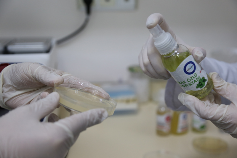 Bu aşamada bizde özellikle antimikrobiyal aktivite gösteren bitkilerden kolonya, dezenfektan ve sabun ürettik. Sözü geçen bitkilerin ekstraklarını CÜTAM Aromatik Bitki Araştırma Laboratuvarında kendimiz elde ettik.