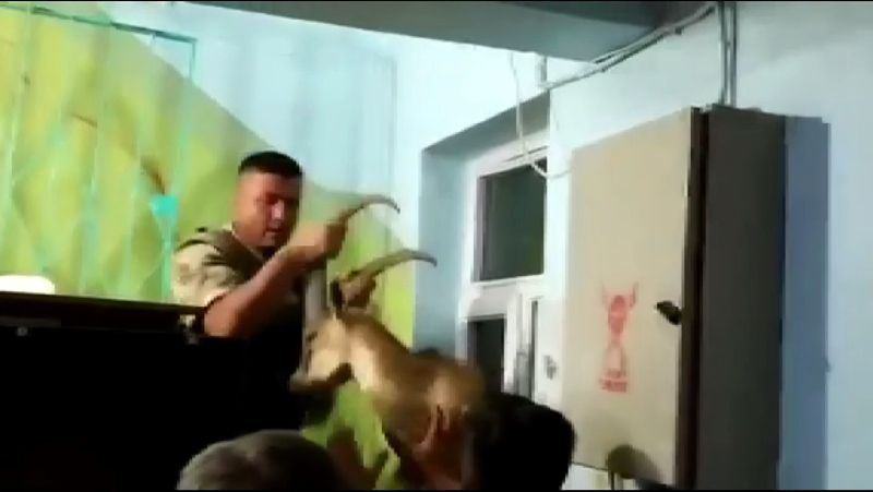 Güvenlik korucuları ve köylüler caminin ikinci katına kaçan dağ keçisini uzun uğraşlar sonrasında yakaladı. Boynuzlarından yakalanan dağ keçisiyle hatıra fotoğrafı çektirmeyi ihmal etmeyen köylüler, daha sonra dağ keçisini doğaya saldı.