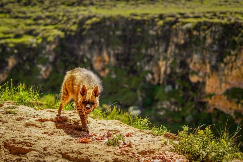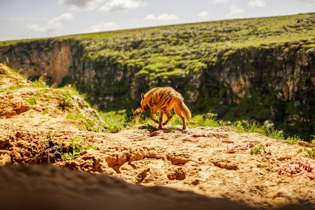 Adıyaman'ın Besni ilçesinde, nesli tükenme tehlikesi altında olan çizgili sırtlan görüntülendi