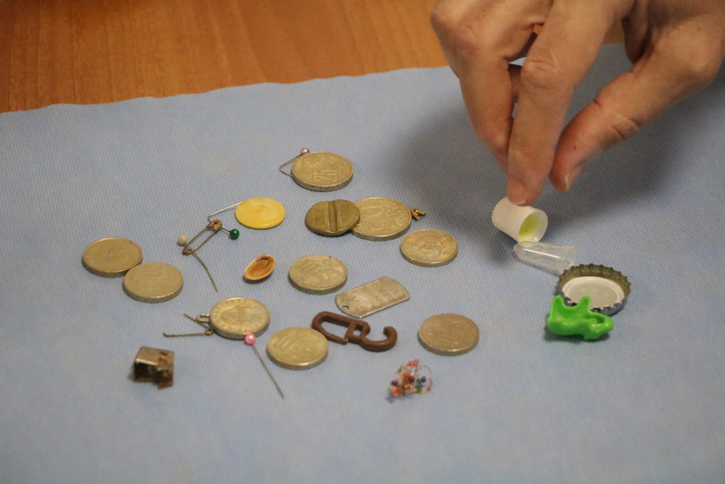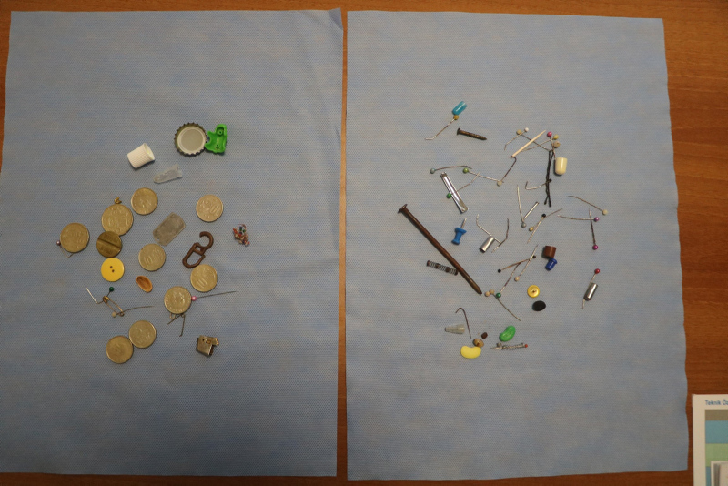 Prof. Dr. Ekber Şahin, hastaların yemek ve soluk borularından çıkartılan objeler ile yapılan bu koleksiyonun oldukça değerli ve şaşırtıcı olduğunu ifade ederek, "Bu koleksiyon kliniğimizin koleksiyonu. Yıllardır devam eden bir koleksiyon. Bizden önceki çalışan hocalarımızla başlayan ve bizle devam eden bir koleksiyon. İlginç bulduğumuz; soluk yolundan ve yemek borusundan çıkarttığımız yabancı cisimleri biriktirdik. Çok değişik çeşitli cisimler var burada. Tabi bunlar sadece bizim saklayabildiklerimiz. Saklayamadığımız organik dediğimiz; fındık, fıstık ve leblebi gibi birçok yabancı cisim çıkarttık. Yine saklanması mümkün olan ama bazıları hastalar tarafından alınan yabacı cisimler de var. Oldukça değerli bir koleksiyon olduğunu görüyorum. Şuan elimizde 80 civarında yabancı cisim var. İçinde çok çeşitli maddeler var. Türban iğnesi; bozuk para, jeton, balık kılçığı, raptiye ve birçok yabancı cisim var" dedi.