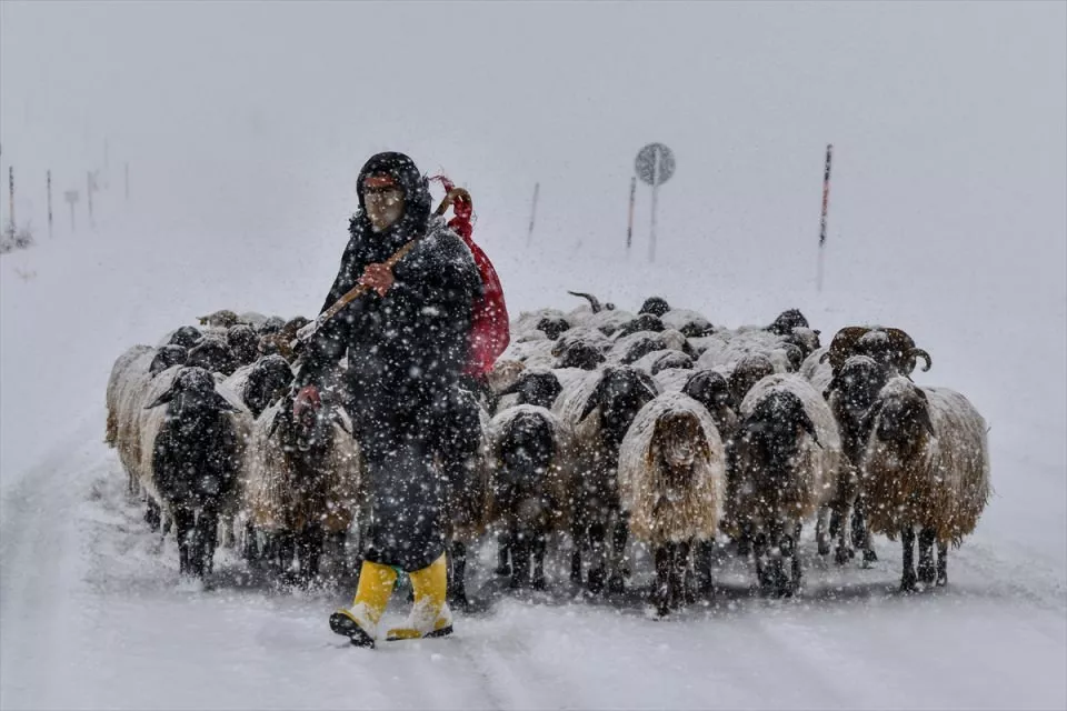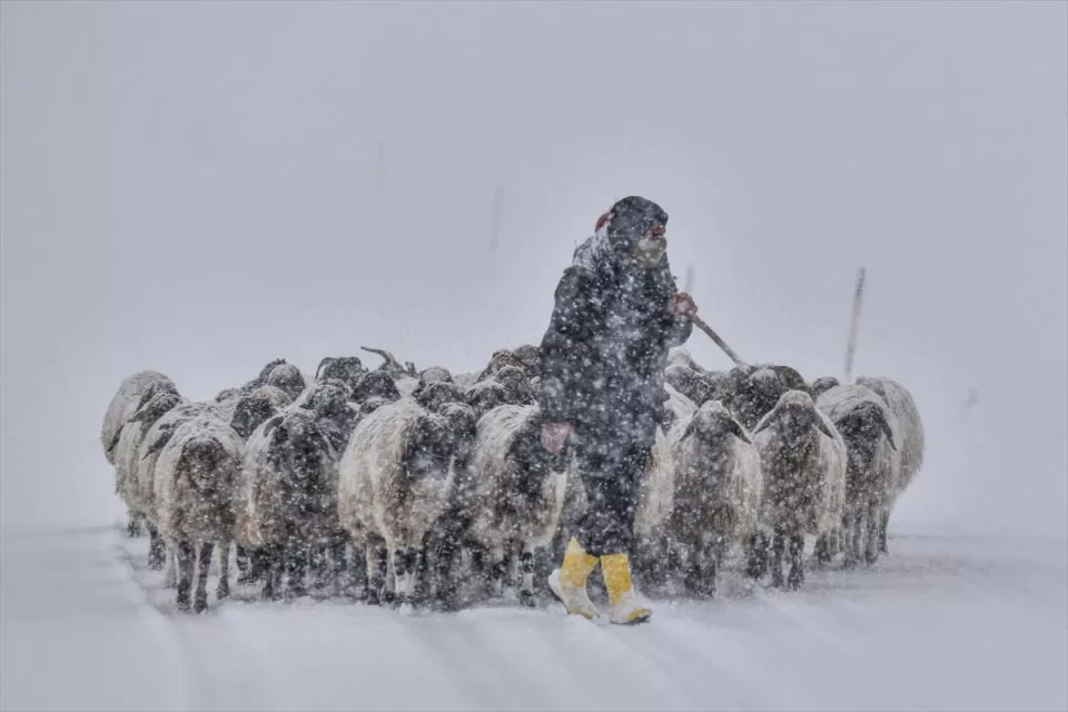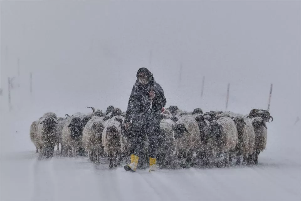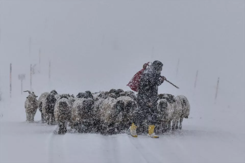 Van'da etkili olan kar yaşamı olumsuz etkiledi. Koyunlarını yayladan köye götürmeye çalışan besiciler kar ve tipiye yakalandı.