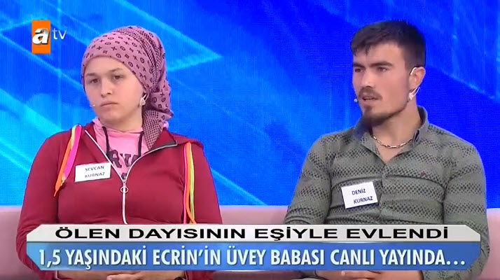 Ecrin 4 aylıkken Cengiz Kurnaz kalp krizinden yaşamını yitirince Sevcan Kurnaz'ın, 7,5 ay önce de ilk eşinin kız kardeşinin oğlu olan Deniz Kurnaz ile evlendiği ifade edildi. Sevcan Kurnaz'ın bu evlilikten de 6,5 aylık hamile olduğu bildirildi. Ecrin'in üvey amcası Özkan Kurnaz'ın ikilinin ilişkilerini önceden bildiği ve durumu kalp krizinden ölen ilk eşi Cengiz Kurnaz'a söylediği belirlenmişti.