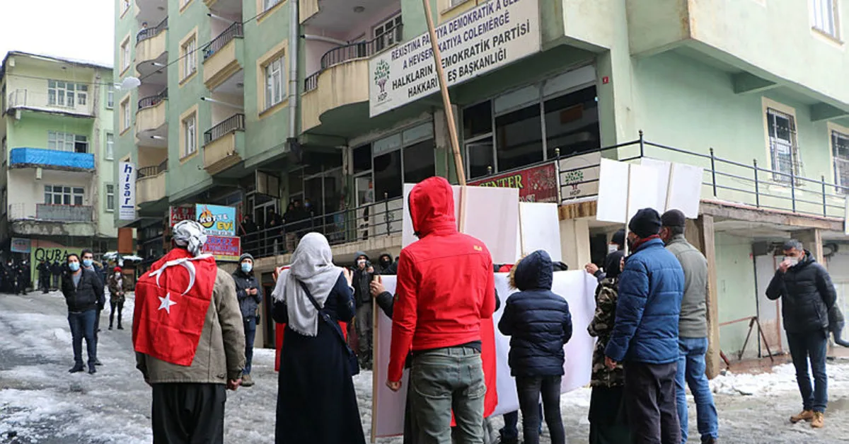 Çocukları terör örgütü PKK tarafından kaçırılan aileler, ellerinde Türk bayrakları ve üzerinde 'Kürt çocukları artık HDP'ye piyon olmayacak', 'Çocuklarımız dağda kurda, kuşa yem olmasın' yazılı pankartlarla bir yürüyüş yaptı. "Kahrolsun PKK", "Kahrolsun HDP" sloganları atan aileler, Hakkari HDP il binası önüne geldi. HDP'liler ise geçen hafta olduğu gibi annelerin sesini bastırmak için parti balkonuna ses sistemi kurarak seçim muziği çaldırdı. Kayınbiraderi, 5 yıl önce dağa kaçırılan Leyla Çiftçi, Hakkarili anneler adına açıklama yaptı.
