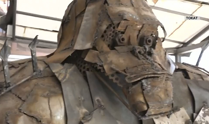 Tokat'ta yaşayan iki sanat tutkunu topladıkları hurda malzemelerle iki metrelik bir goril maketi yaptı.