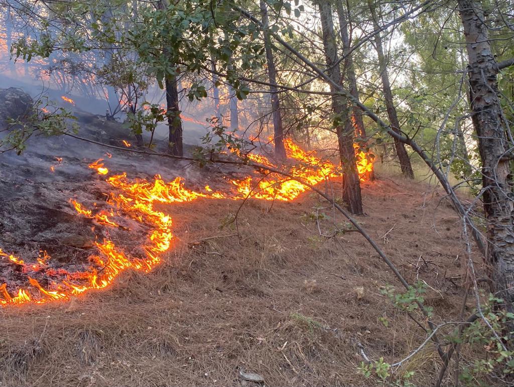 Henüz bilinmeyen bir nedenle çıkan yangın, rüzgarın da etkisiyle büyüyerek gece de devam etti. Orman Bölge Müdürlüğüne bağlı ekiplerin söndürme çalışmaları gece boyunca sürdü.