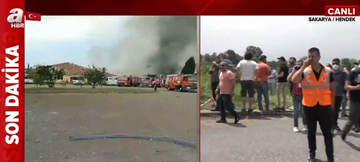 Son dakika haberi... Sakarya'nın Hendek ilçesinde, havai fişek fabrikasında patlama meydana geldi. A Haber ekipleri patlama bölgesinden son detayları aktardı. Sakarya Valisi Çetin Oktay Kaldırım, havai fişek fabrikasındaki patlamaya ilişkin, "Fabrika sahibinden aldığımız bilgiye göre içeride yaklaşık 150-200 arası insan var ama patlamalar devam ettiği için müdahale edilemiyor." dedi.