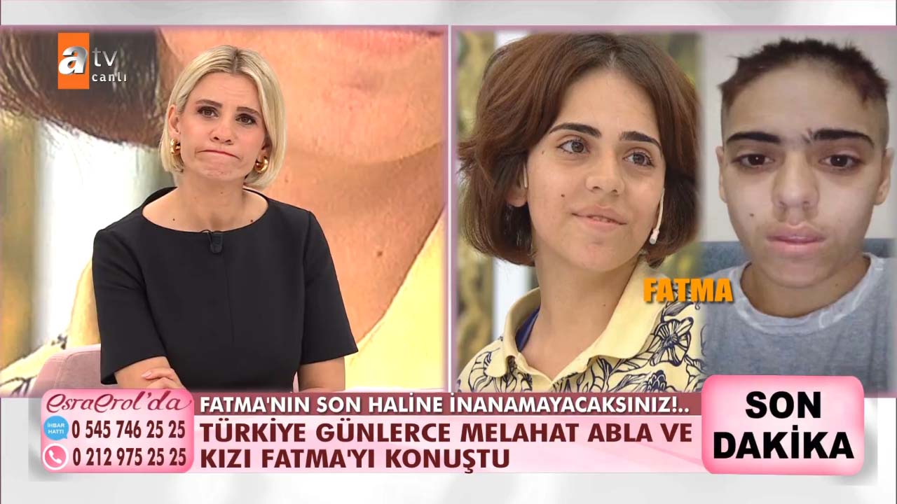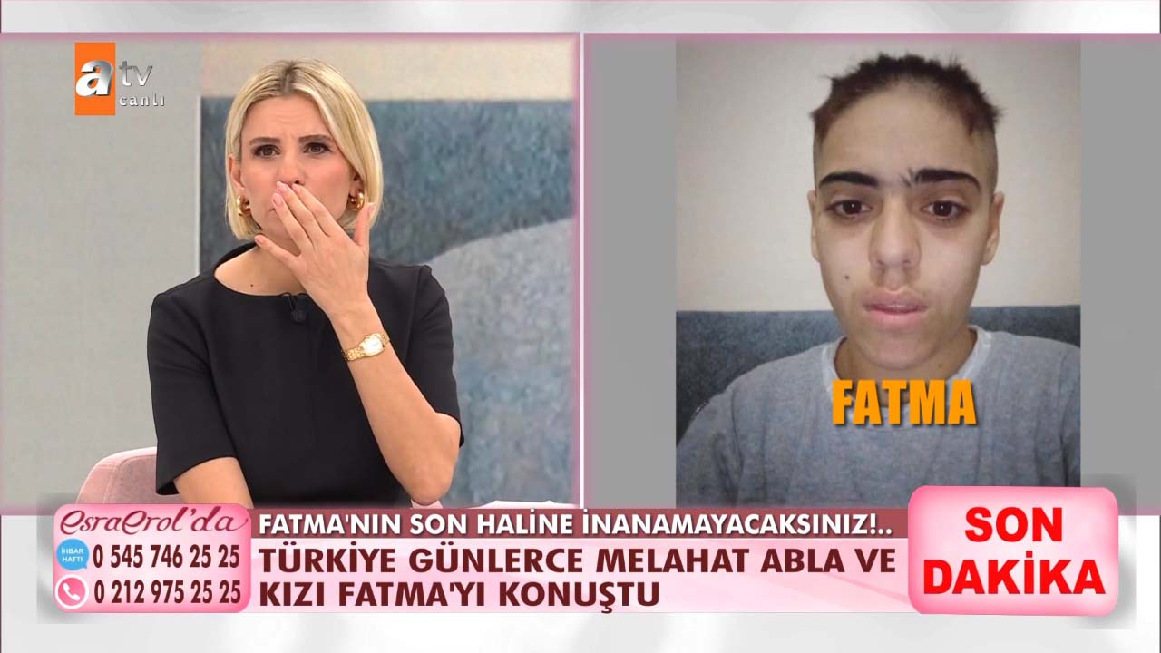 ATV'nin ve Türkiye'nin en çok izlenen ve beğenilen programlarından Esra Erol'da bugün Fatma'nın son hali herkesi şaşırttı.