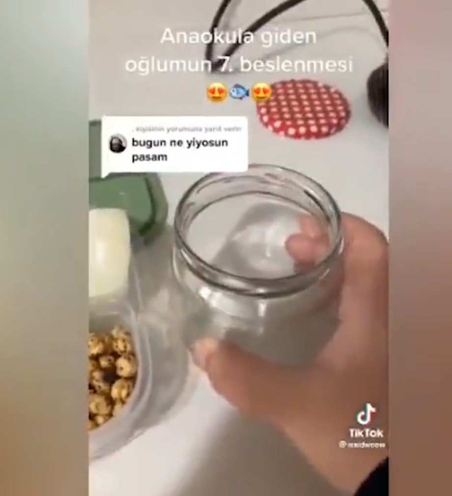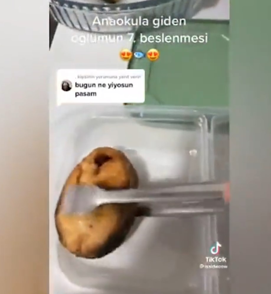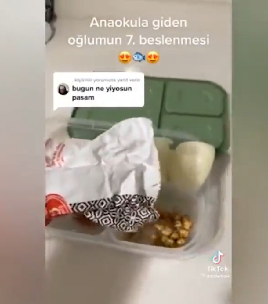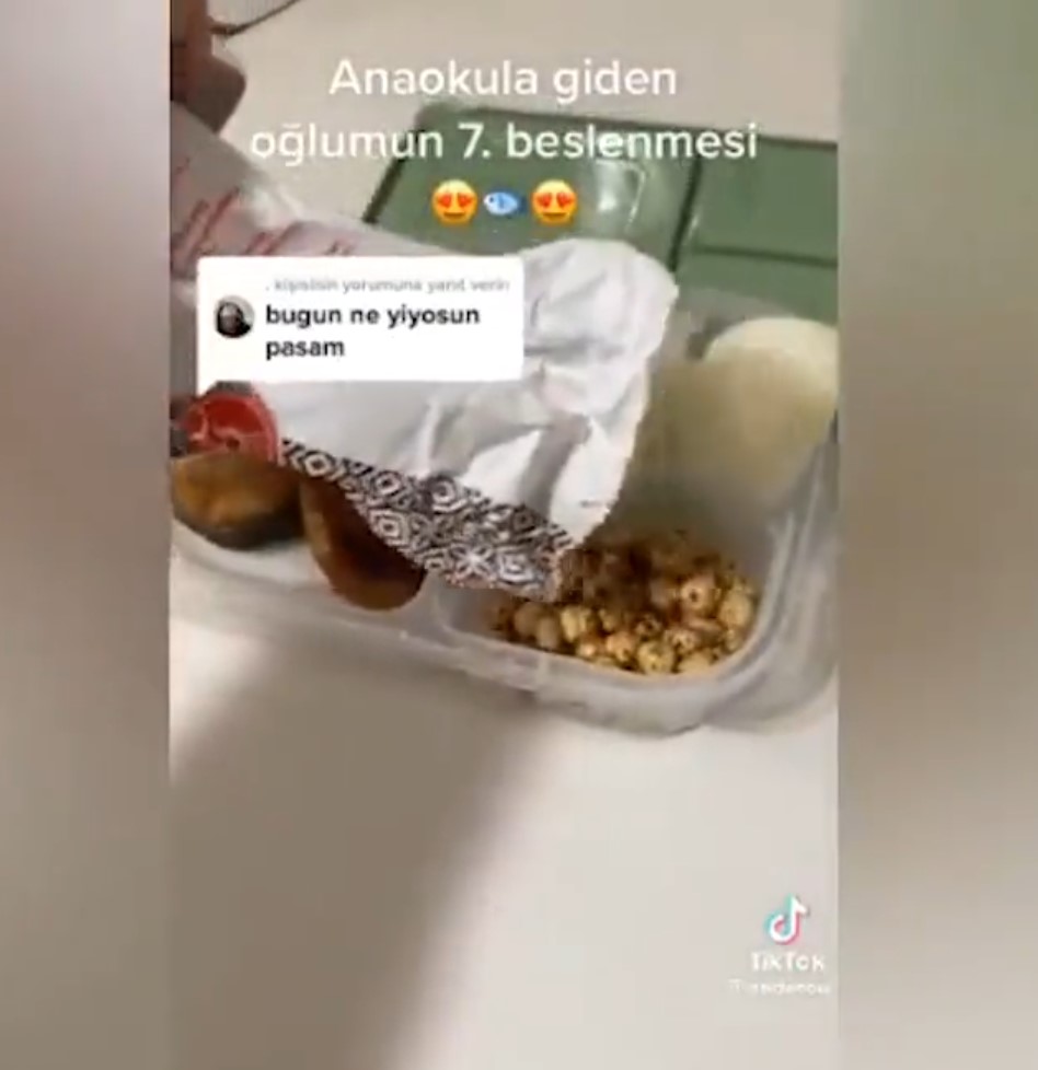 TikTok'ta her gün oğlu Hıfzı Berkay için hazırladığı beslenme çantasını paylaşan bir annenin "Anaokula giden oğlumun 7. gün beslenmesi" başlığıyla yayınladığı son video olay yarattı.