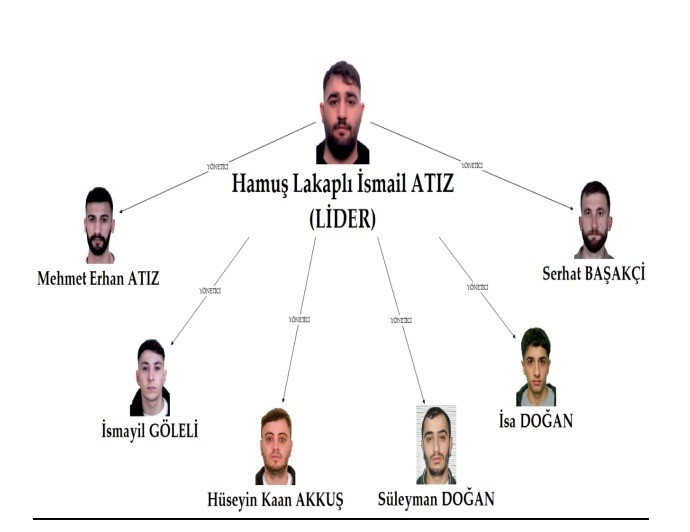 İddianamede "Casperlar" "silahlı suç örgütünün elebaşısı konumunda bulunan "Hamuş" kod adlı İsmail Atız etrafında eylem ve fikir birlikteliğinde hareket eden Mehmet Erhan Atız, Hüseyin Kaan Akkuş, "Burak Bulut" kod adlı İsmayil Göleli, "Çaki" kod adlı İsa Doğan, Süleyman Doğan ve "Dayı" kod adlı Serhat Başakçi'nin örgüt yöneticisi konumunda olduğu kaydedildi.