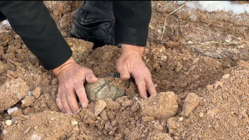 Kepçeyle toprağı kazdığı sırada değişik bir taş fark etti alıp temizlediğinde ise insan kalbine benzeyen ilginç bir taş olduğunu gördü.