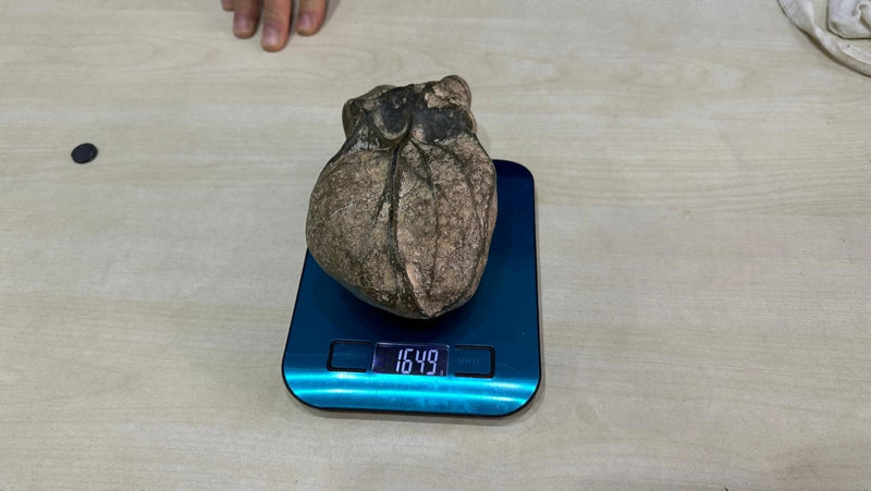 Yazıcıoğlu, "Mıknatıs testi sonucunda, taşın damar kısımlarında mıknatısın tuttuğunu gözlemledik. Uzmanlar, taşın dökülmüş sıcak demire benzer insan kalbiyle aynı olduğunu belirttiler." dedi.